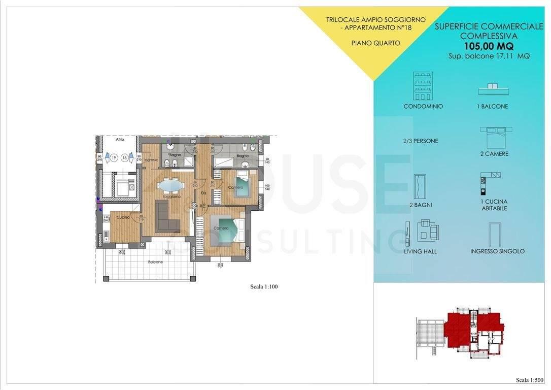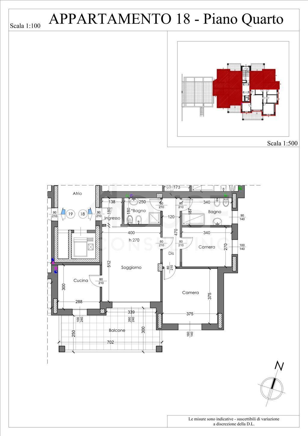 L’appartamento n. 18, situato al quarto piano, è composto da: