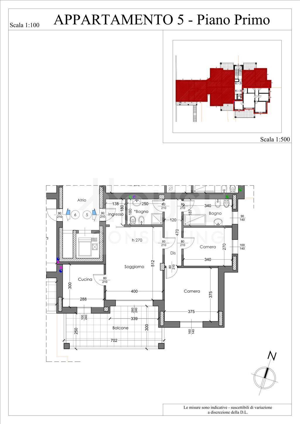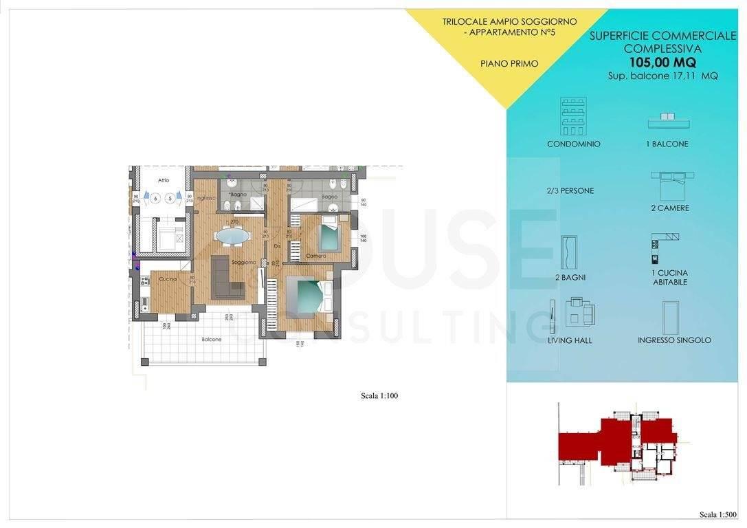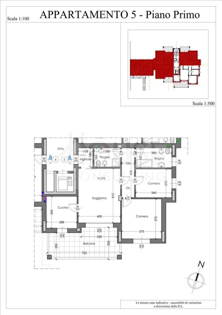 L’appartamento n. 5, situato al primo piano, è composto da: