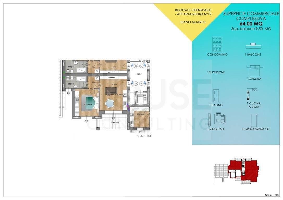 L’appartamento n. 19, situato al quarto piano, è composto da: