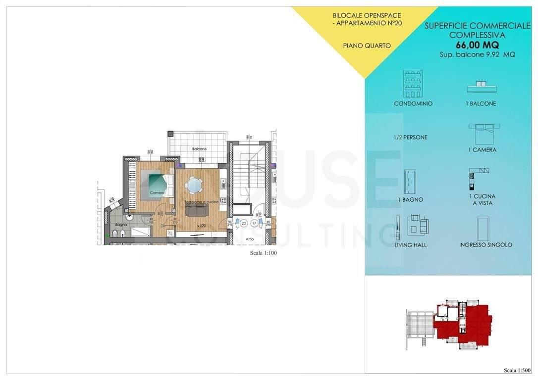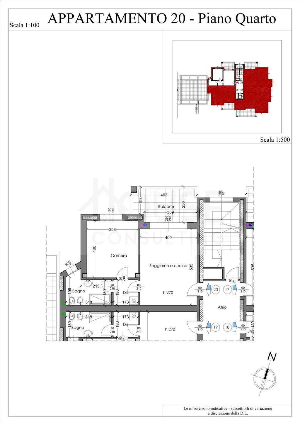 L’appartamento n. 20, situato al quarto piano, è composto da:
