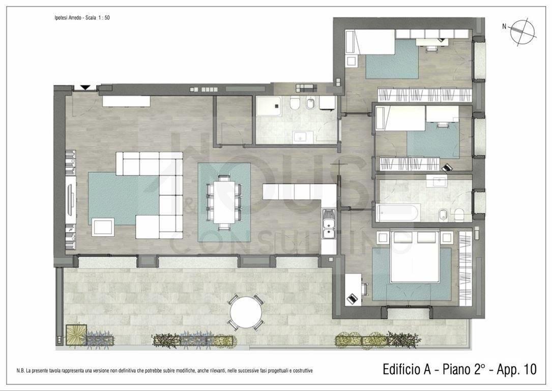 Prestigioso appartamento al secondo piano di quattro ampi locali con doppi servizi 161 mq totali grande terrazzo coperto di 36mq totali.