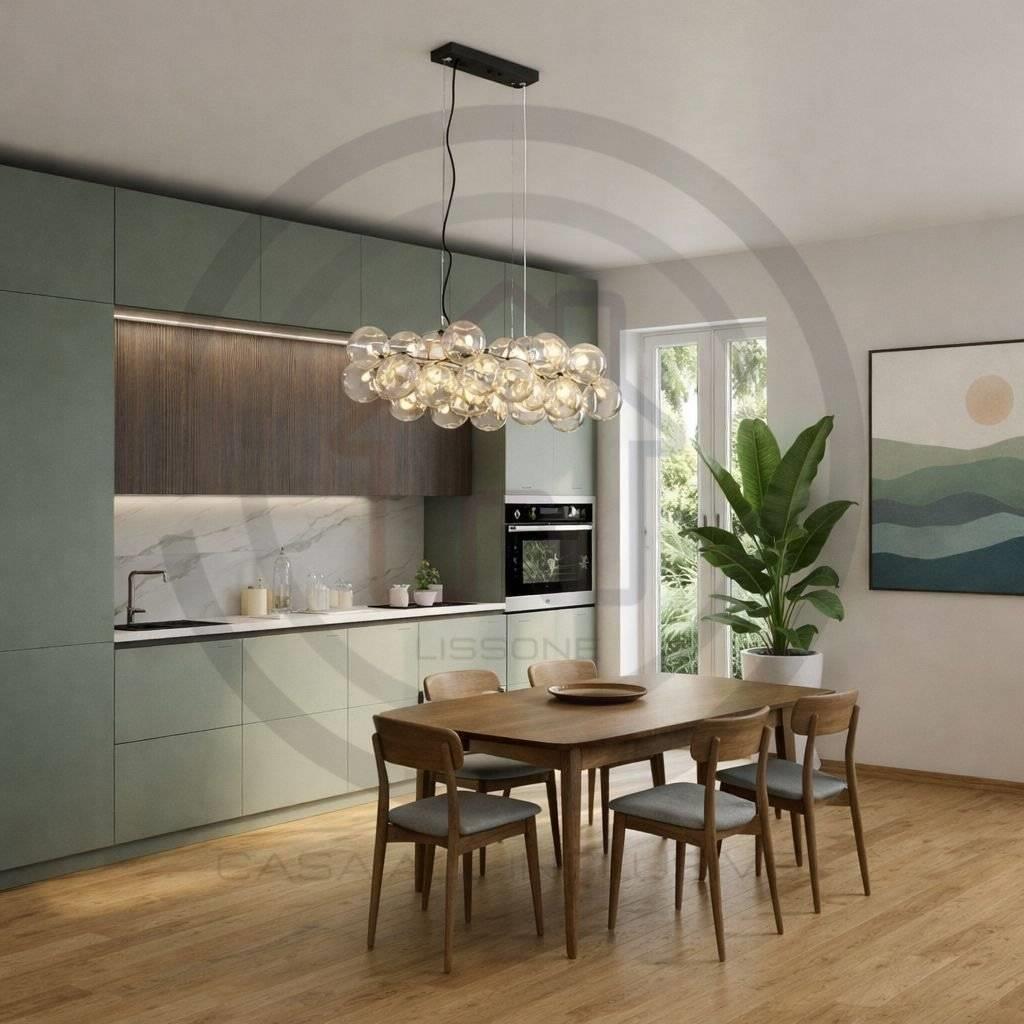 La soluzione posta al piano terra, e' composta SOGGIORNO CON PARETE CUCINA, splendido infisso doppio per uscita sul PATIO (ideale come prolungamento zona living) il quale ci accompagna direttamente nel giardino privato di 80 mq circa.