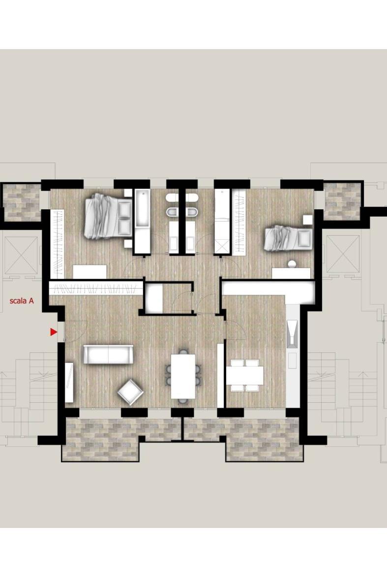 Trilocale situato al piano primo dello stabile (vano scala A) con accesso da portoncino d’ingresso blindato (classe 4) verso l’ampio soggiorno dalla quale si ha accesso al primo spazioso balcone dell’appartamento, avremo accesso alla cucina che ci offrirà un accesso al secondo balcone, entrambi esposti a sud. Per accedere al ripostiglio e alla zona notte passeremo per un disimpegno ad L che offrirà accesso alle camere matrimoniali e i due bagni. Le camere danno la possibilità di accedere rispettivamente al proprio balconcino esposto a nord.