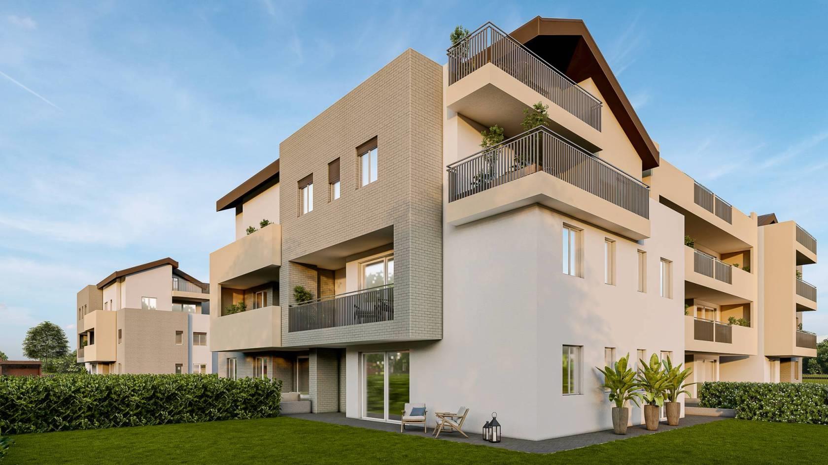 Il progetto richiama la tradizione, con la sua corte aperta che accoglie 42 appartamenti tra duplex, trilocali e quadrilocali con giardini o terrazzi oltre a spazi verdi comuni dove vivere all’aperto con la famiglia in tutta sicurezza.