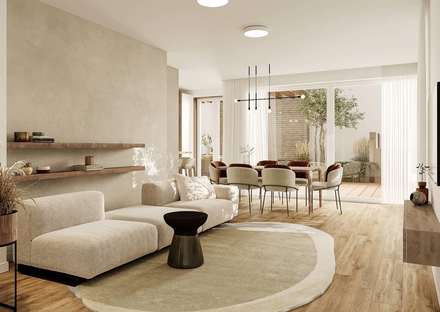 Le terrazze integrate al soggiorno e i giardini di Corte Canaletto sono un vero ambiente in più da vivere in cui rilassarsi. Le ampie vetrate creano un dialogo costante tra l’interno delle abitazioni e gli spazi esterni, una piacevole fonte di luce e di colori che cambiano ad ogni ora della giornata.