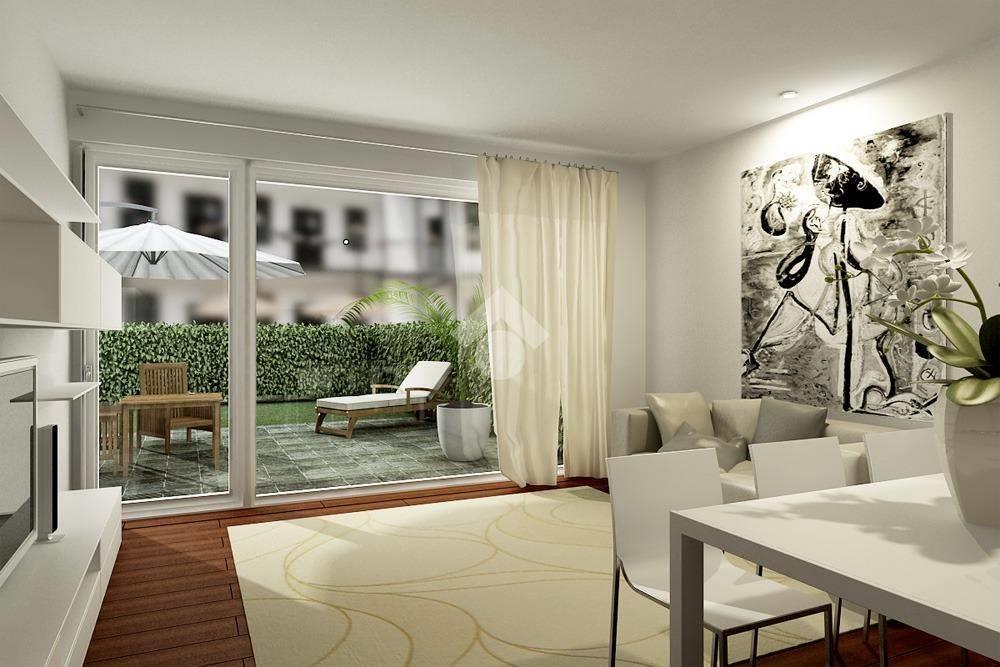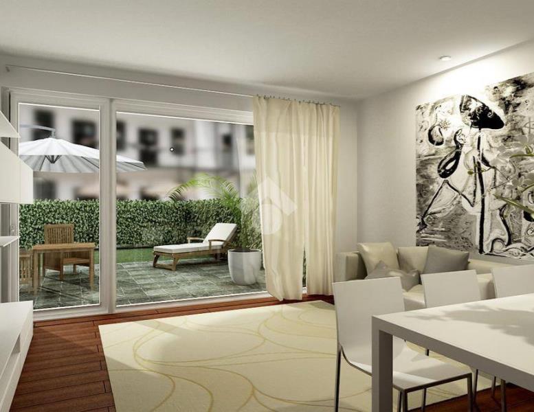 All’interno, ambienti moderni e funzionali: luminoso soggiorno con cucina a vista, disimpegno, due bagni con doccia e due camere di cui la matrimoniale con cabina armadio e la cameretta.