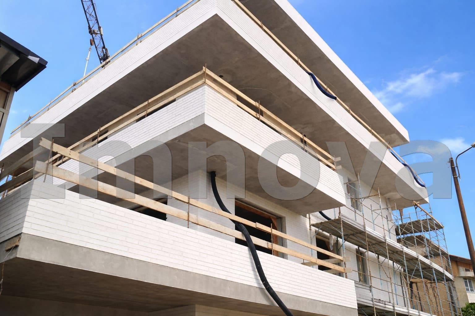 La facciata sarà rivestita con mattone faccia a vista di colore bianco, in parte con rivestimenti in gress porcellanato e in parte tinteggiata.