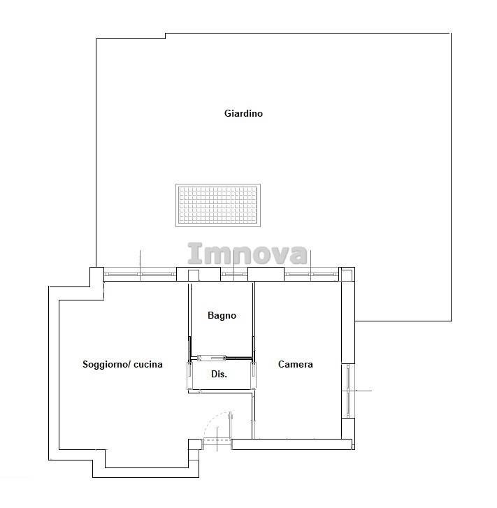 L' appartamento proposto è un bilocale al piano terra con giardino privato composto da soggiorno con angolo cottura, disimpegno che conduce alla camera matrimoniale e al bagno.