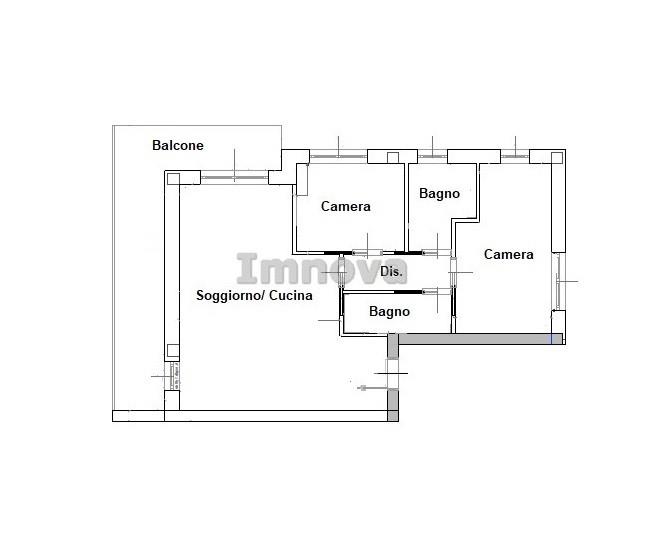 L' appartamento proposto è un tre locali al secondo piano con ampio balcone composto da soggiorno con angolo cottura, disimpegno che conduce alle due camere da letto e ai doppi servizi.