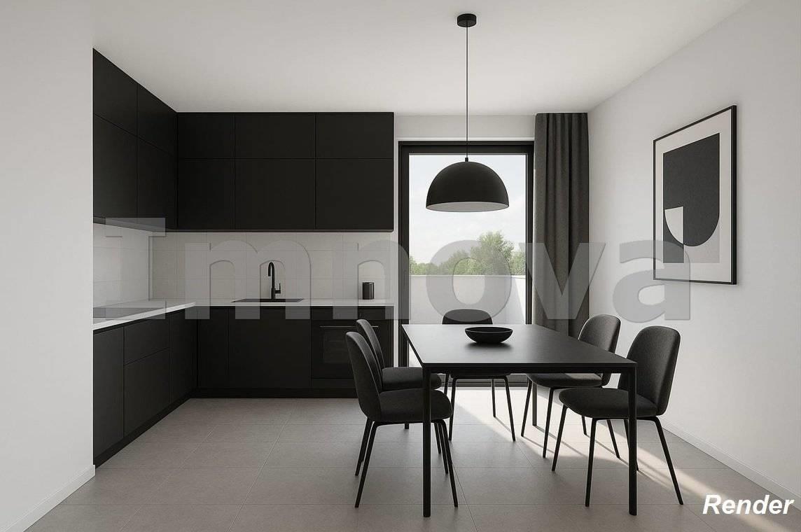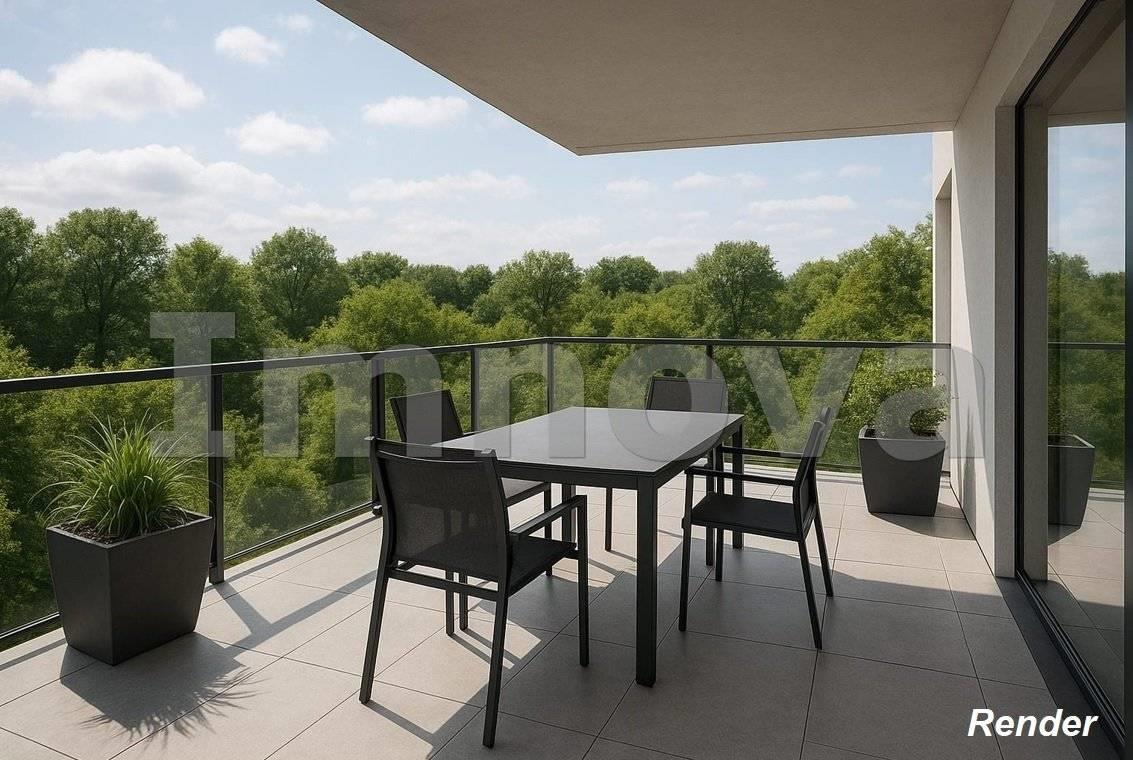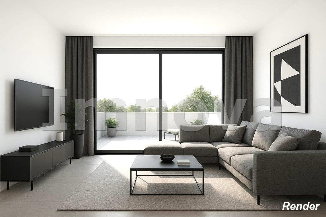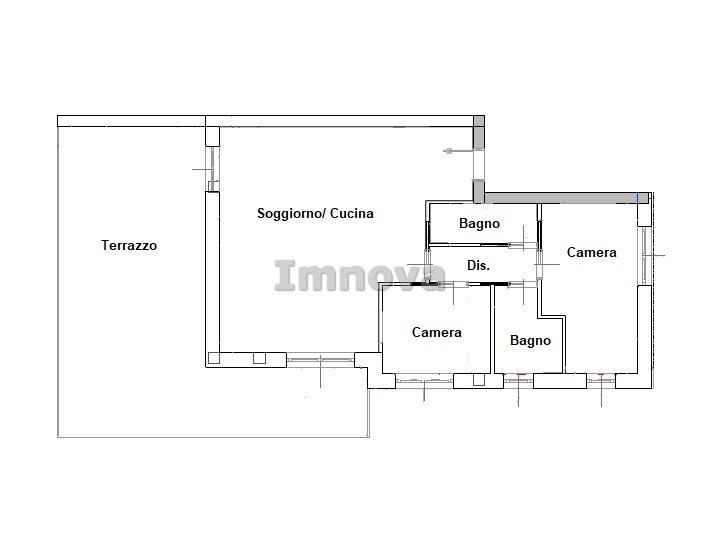 L' appartamento proposto è un tre locali al primo piano con terrazzo di circa 50 mq composto da soggiorno con angolo cottura, disimpegno che conduce alle due camere da letto e ai doppi servizi.