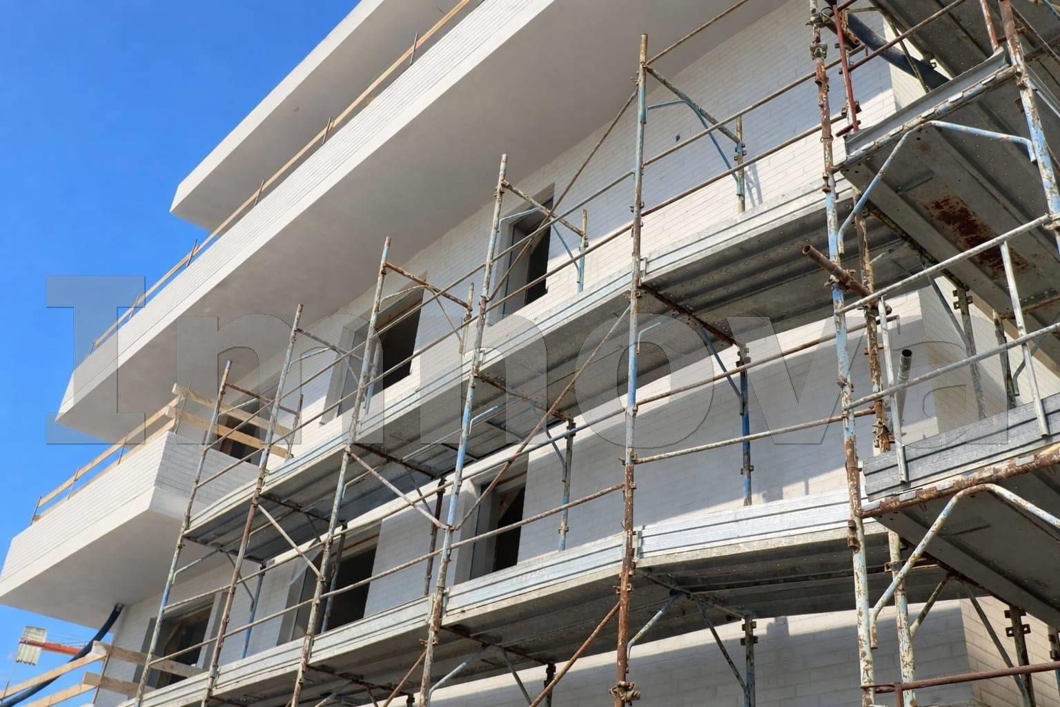 La facciata sarà rivestita con mattone faccia a vista di colore bianco, in parte con rivestimenti in gress porcellanato e in parte tinteggiata.