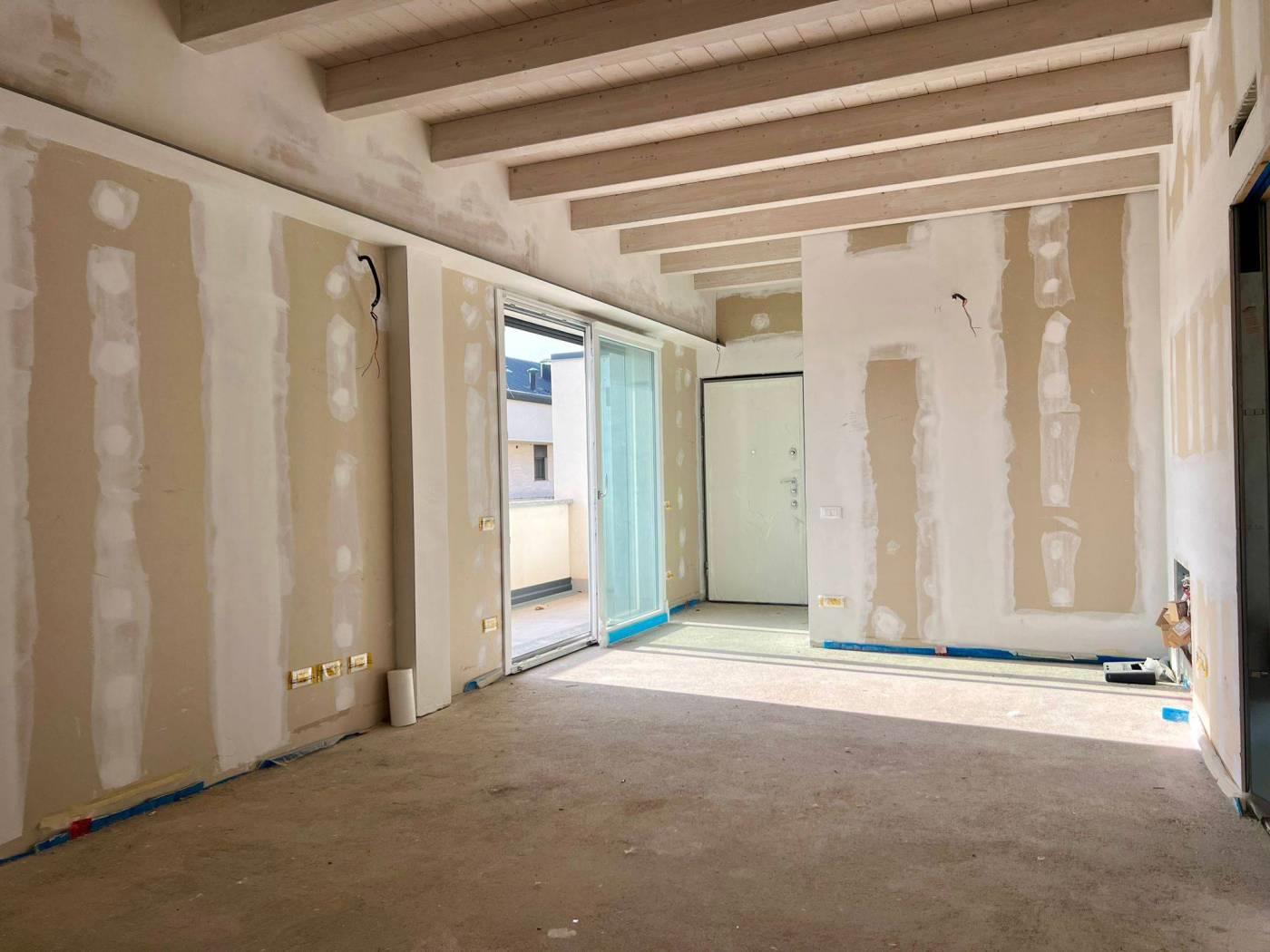 Mariano Comense: frazione Perticato, proponiamo in vendita in una piccola palazzina del 2023 di sole quattro unità abitative un ampio trilocale di 100 mq posto al piano primo ed ultimo il quale offre un'atmosfera accogliente grazie alle travi in legno a vista ed alla tripla esposizione sud-est-ovest.