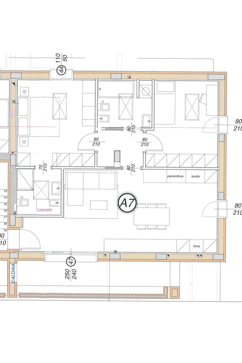 La soluzione è composta da ingresso, soggiorno ampio con cucina a vista con affaccio su balcone, disimpegno, bagno, due camere da letto matrimoniali di cui una con bagno.