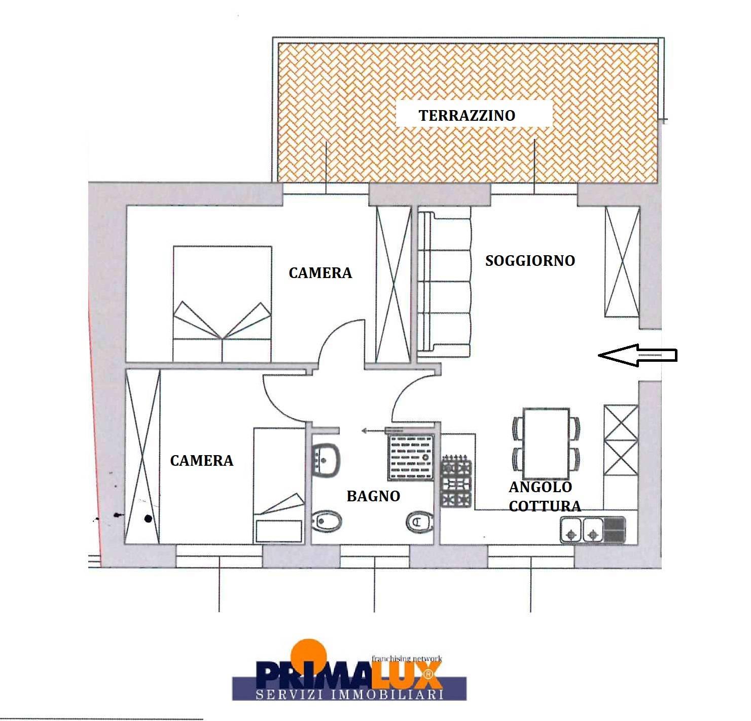 L'immobile è composto da soggiorno con angolo cottura, disimpegno, camera matrimoniale, cameretta e bagno. Ad impreziosire l' immobile è la presenza del terrazzo di circa 18 mq che rappresenta il luogo ideale per rilassarsi all'aria aperta.