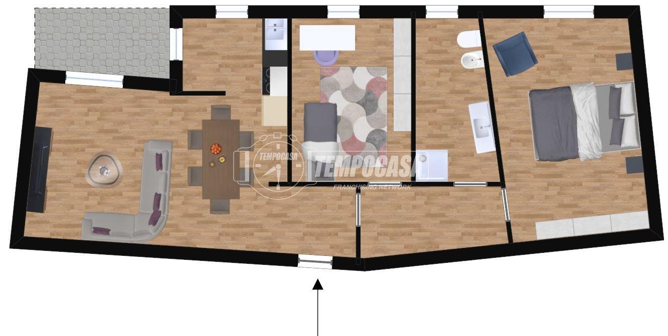 L’ingresso si apre su un luminoso soggiorno con cucina a vista, uno spazio accogliente e contemporaneo pensato per la convivialità, con affaccio su un piacevole balcone che regala uno sfogo esterno ideale per momenti di relax. La zona notte, ben separata, ospita una camera singola e una spaziosa matrimoniale, ambienti funzionali e facilmente personalizzabili, oltre a un bagno finestrato che garantisce luce naturale e praticità.