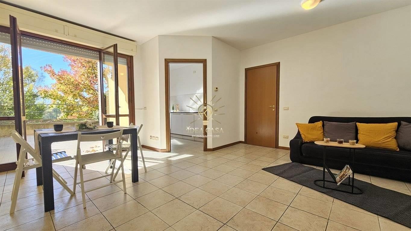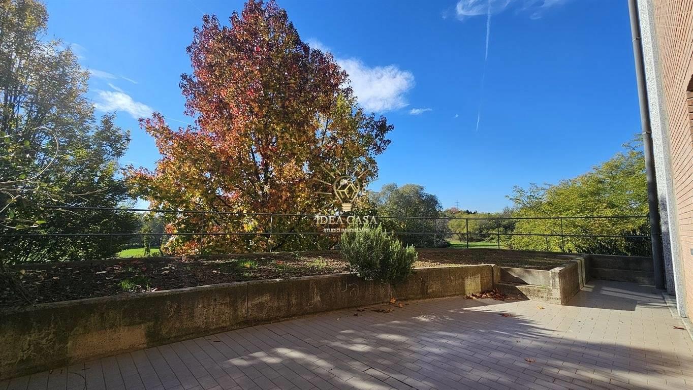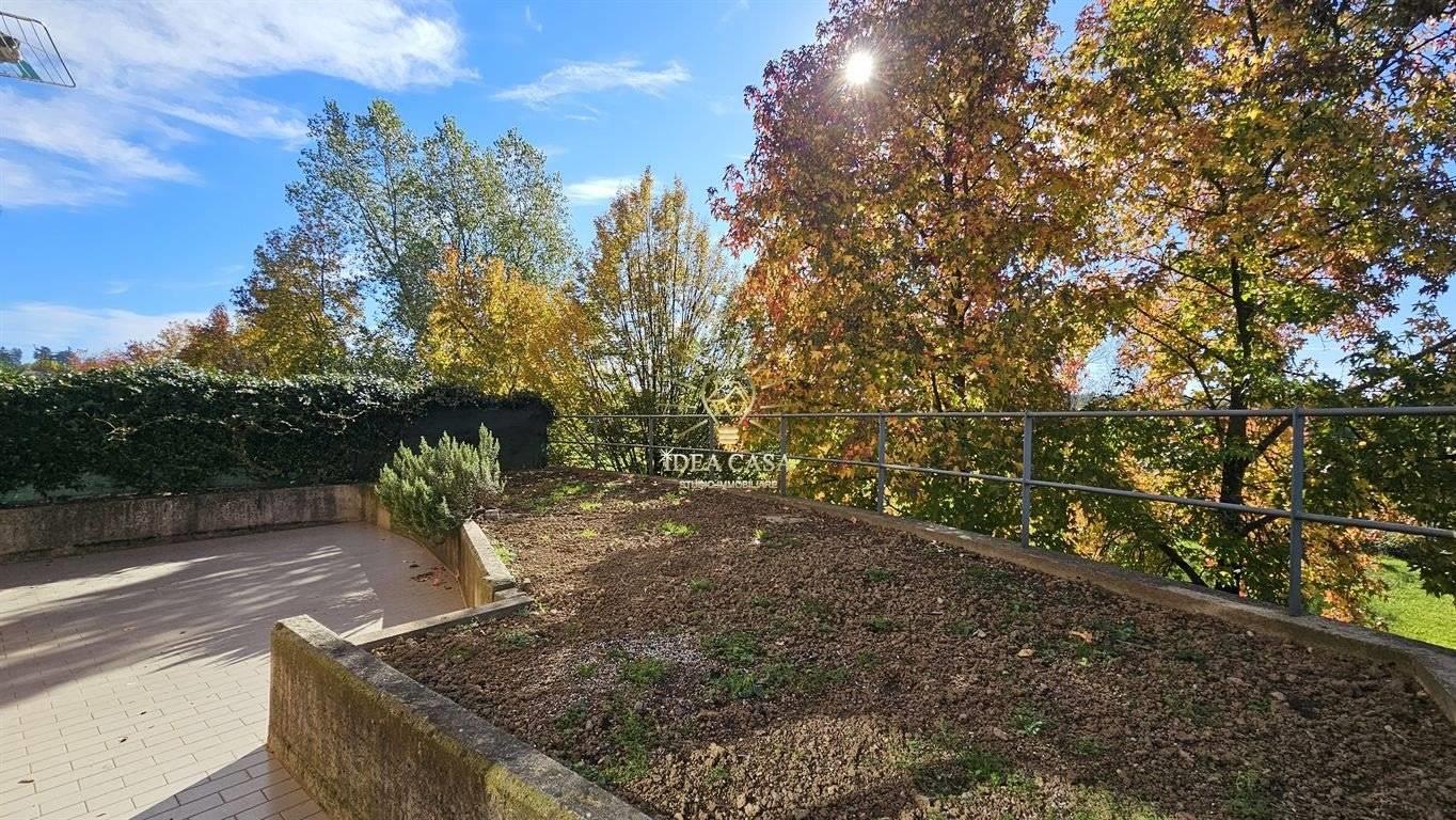 Immerso nel verde, con vista aperta sui campi, vanta una fantastica esposizione a Sud che inonda di luce ogni ambiente. Goditi momenti di relax sul tuo terrazzo e giardino privati, dalla quale si accede mediante dei grandi finestroni ubicati nella zona giorno. Due accoglienti camere matrimoniali e un ampio bagno con vasca completano la proprietà.