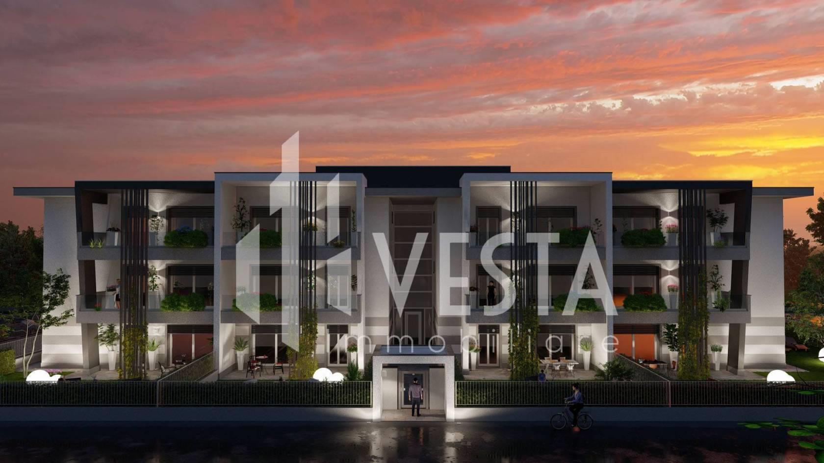 L'appartamento bilocale posto al piano primo, da rifinire internamente tramite capitolato di pregio (porte, pavimenti, sanitari con rubinetteria e rivestimenti) è così composto; tramite ingresso accediamo alla zona living con cucina a vista impreziosita dalla grande vetrata scorrevole, tramite disimpegno passiamo nella zona notte dove troviamo una camera matrimoniale ed un bagno con sanitari sospesi, termoarredo e doccia.