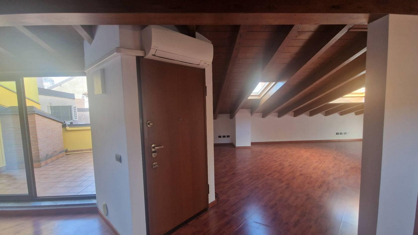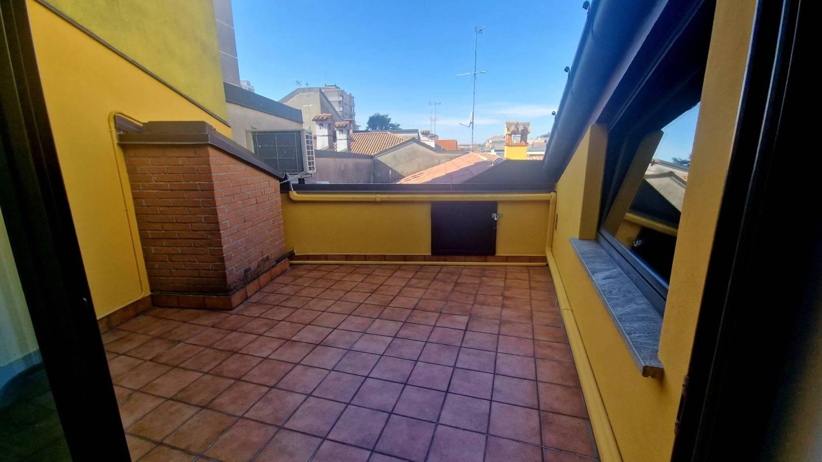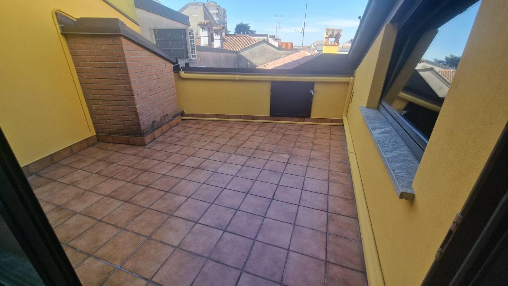 Nel cuore del centro storico, sulla più importante via commerciale di Seregno e a pochi metri dalla stazione ferroviaria proponiamo una meravigliosa soluzione open space con terrazzo riservato. La soluzione si sviluppa al secondo e ultimo piano di un mini contesto condominiale e interamente si distribuisce cosi: ingresso, ampia zona living open space con meraviglioso terrazzo, zona notte open space, disimpegno, bagno con doccia. L'appartamento è gia provvisto di cucina funzionale, lavastoviglie e arredo bagno. Possibilità di personalizzare gli spazi a proprio piacimento. Ad oggi è ancora disponibile un posto auto recintato a € 100,00 mensili.