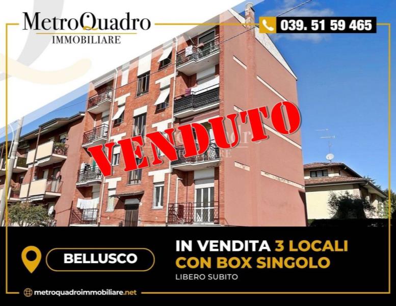 BELLUSCO - A due passi dal centro paese, proponiamo appartamento di 3 locali di 83 mq posto piano rialzato di una palazzina di fine anni '60. Internamente l'appartamento è dotato di un comodo ingresso, il soggiorno luminoso con affaccio sul balcone, la cucina abitabile, un'ampia camera matrimoniale, la seconda camera da letto, il bagno finestrato con doccia rifatto una ventina di anni fà ed un pratico ripostiglio guardaroba. Le finiture interne sono dell'epoca pertanto l'immobile necessita di una ristrutturazione generale. Completa la proprietà il box singolo ad uso autorimessa. Immobile subito disponibile.