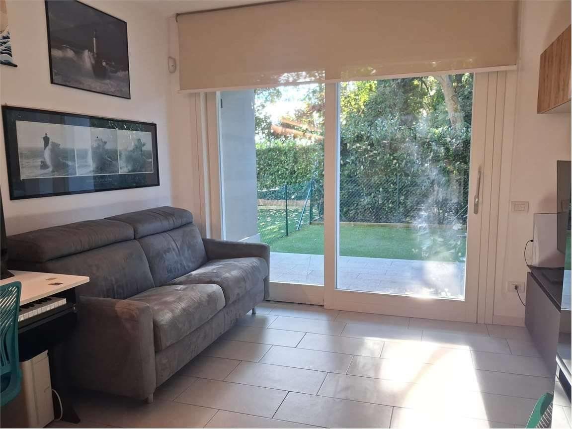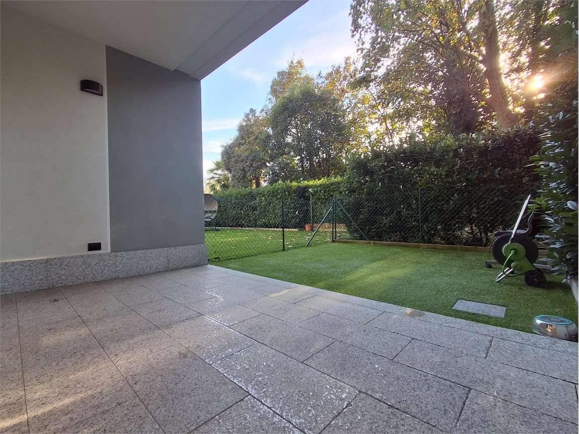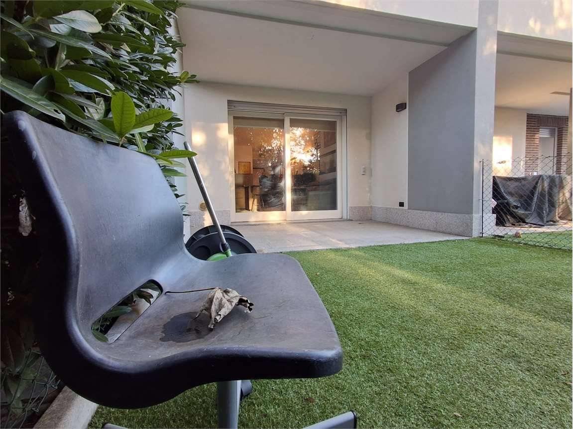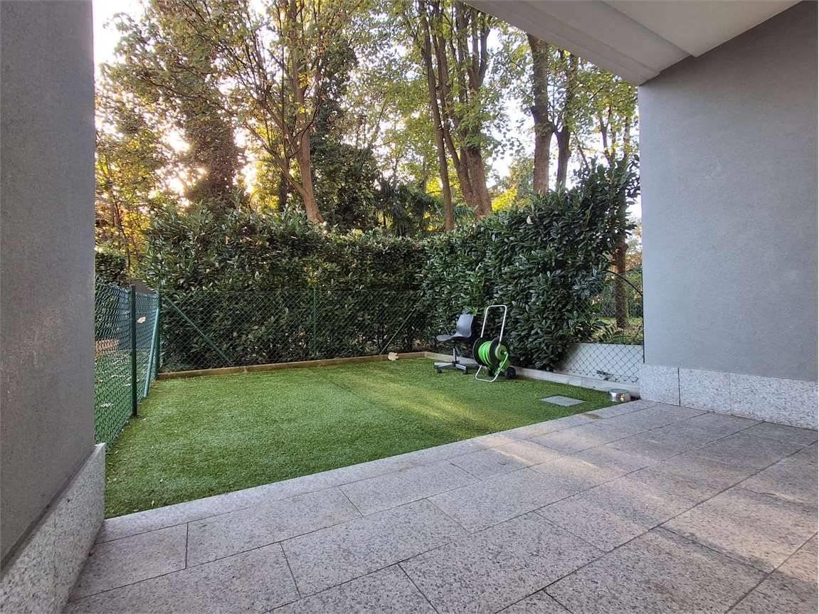 Il portico e l'area esterna, in parte a giardino e in parte piastrellata, contornano l'appartamento e sono accessibili sia dalla zona giorno che dalla camera matrimoniale e confinano con una zona riservata di verde condominiale.
