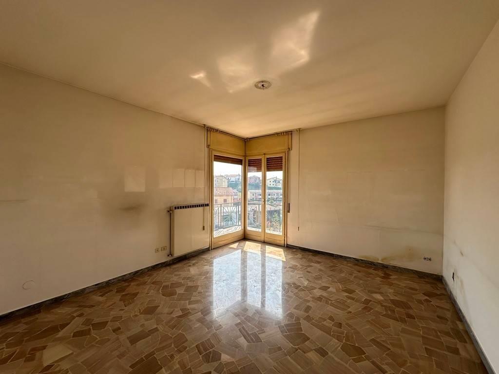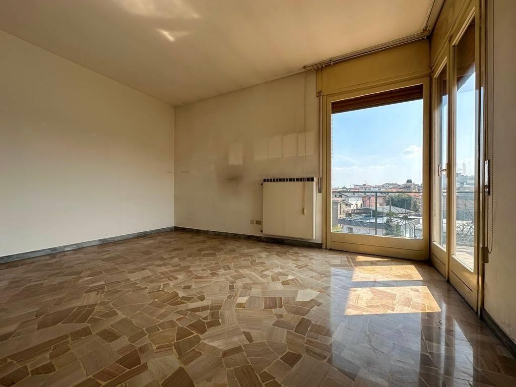 In posizione centrale e panoramica, a pochi passi dai principali servizi e raccordi stradali, proponiamo all'interno di piccola ed ordinata palazzina ampio e luminoso appartamento sito al terzo ed ultimo piano composto da ingresso, soggiorno, cucina abitabile, due camere, bagno e due balconi (entrambi con accesso dalla zona giorno). L'abitazione sviluppa una superficie commerciale di mq 98 e conserva le finiture dell'epoca costruttiva risalente alla metà degli anni '60: infissi in legno vetro singolo completi di tapparelle, porte in legno e pavimentazione in marmo e parquet a listelli (zona notte).