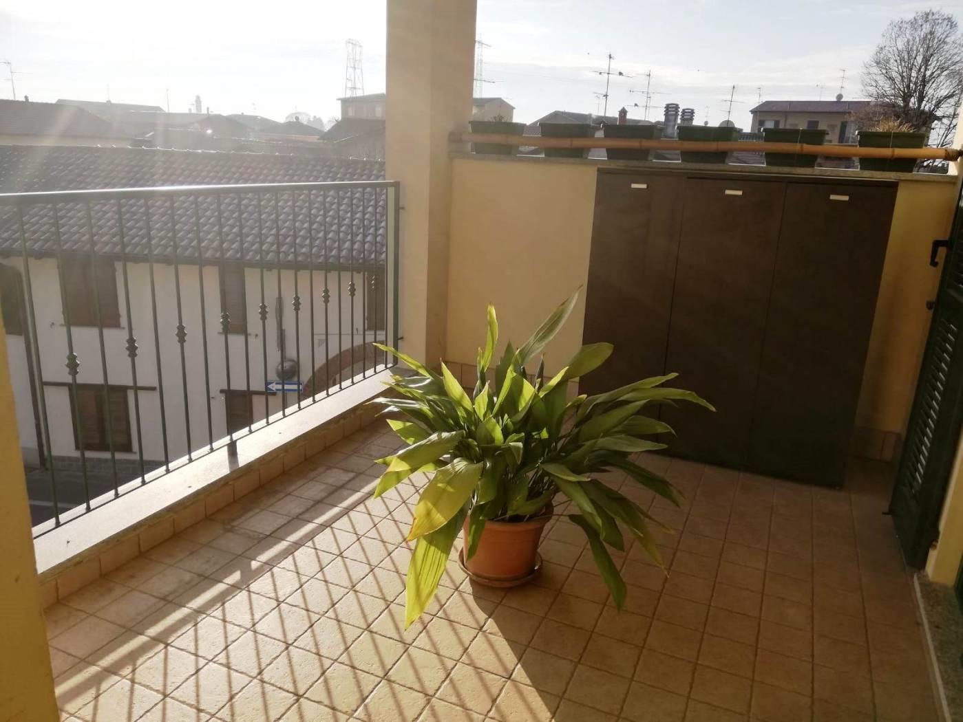 Aicurzio- Ubicata nel cuore del paese, in posizione comoda e servita da ogni genere di necessità, inserito al 2° ed ultimo piano di una graziosa mini palazzina con sole 8 unità familiari, Miranda Immobiliare propone ampio e ottimo Bilocale di circa 75 mq oltre studio e ampio Terrazzino. La particolare soluzione, caratterizzata da bellissime travi in legno a vista, è in perfette condizioni interne, ristrutturata, curata nel dettaglio e ARREDATA. Internamente così disposta: Ingresso su Soggiorno con particolare stufa a legna e Cucina a vista, aventi uscita al comodo Terrazzino di circa 12 mq, disimpegno della zona notte con Servizio finestrato e Camera matrimoniale; collegato tramite scala interna ulteriore spazio Studio/locale hobby soppalcato con vista sul living. A completare il tutto comoda Cantina Immobile assolutamente da visionare ed unico nel suo genere.Immobile a reddito con contratto di Locazione in essere! IDEALE COME INVESTIMENTO E ASSOLUTAMENTE DA VISIONARE! Classe Energetica: E Ipe: 238.62 kwh/mqa Per ulteriori informazioni e per visionare la soluzione senza impegno, potete contattare i seguenti recapiti: telefono fisso: 02.54.10.79.67 telefono mobile: 377.14.98.424 e-mail: anfossi@mirandaimmobiliare.it Consultate il ns. sito: www.mirandaimmobiliare.it