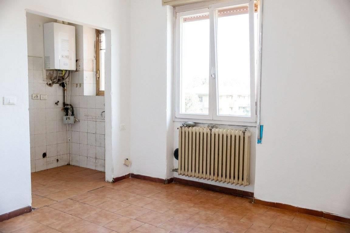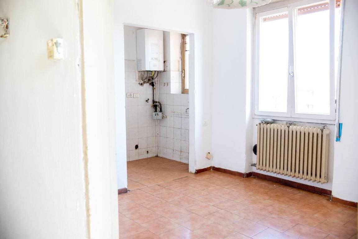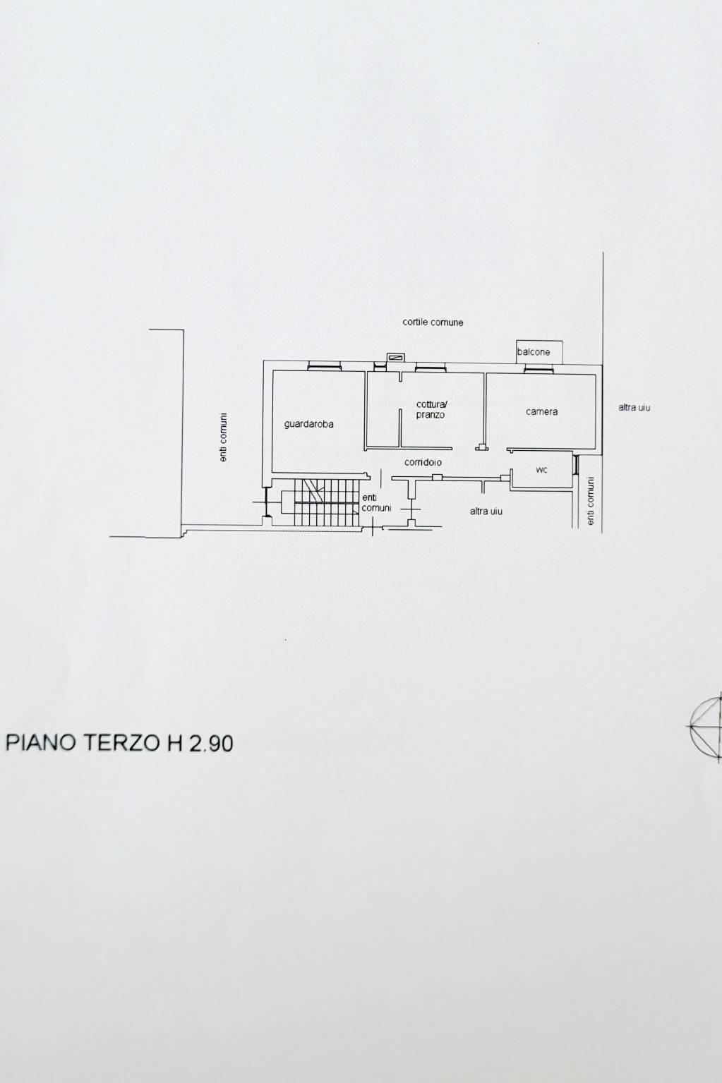 Posto al piano terzo ed ultimo, no ascensore, con affaccio sul cortile interno e libero sui 3 lati, di 71 MQ così composto: ingresso, zona giorno/pranzo con adiacente angolo cottura, disimpegno, matrimoniale con balcone, ampia seconda camera e servizio finestrato con doccia.