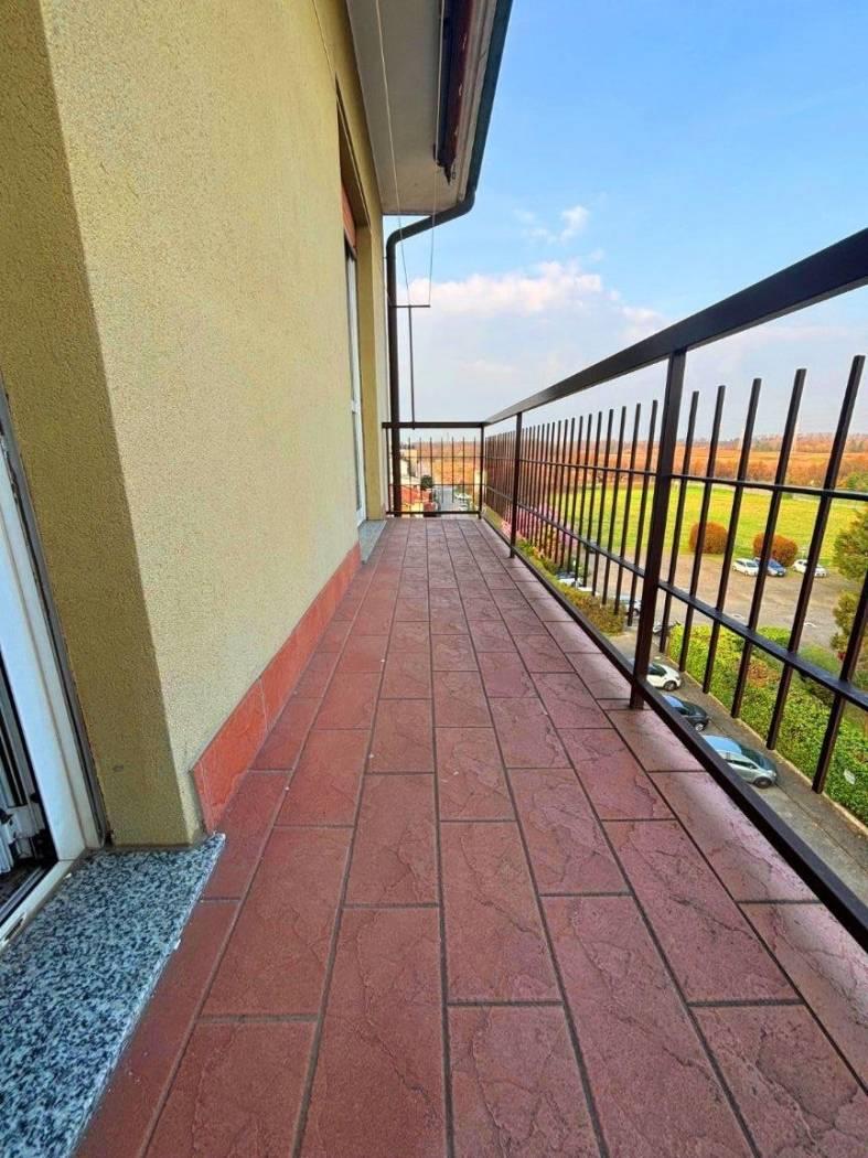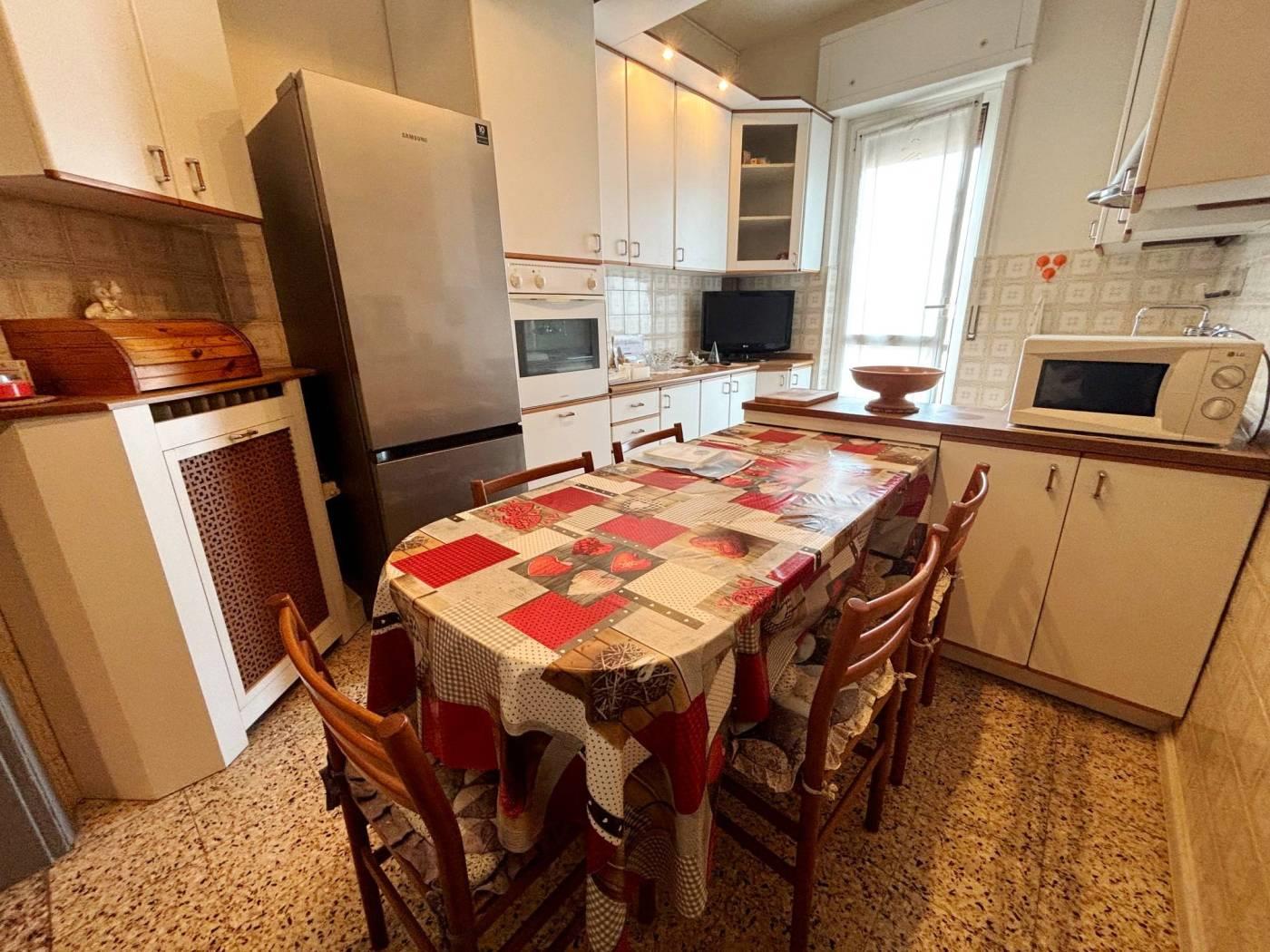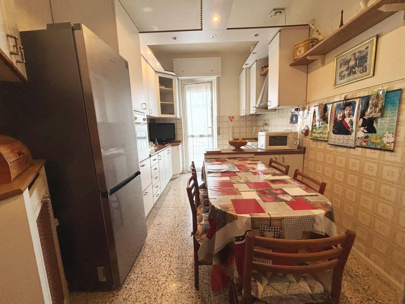 Ingresso tramite ampio disimpegno usato come soggiorno, bagno finestrato, cucina abitabile con uscita su balconata, camera matrimoniale con uscita su balconata, seconda camera da letto.