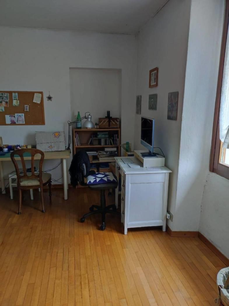 PONTE LAMBRO: 068. Porzione di casa in contesto tranquillo e con ampia area verde di proprietà in parte edificabile. Disposta su più livelli e quindi composta da: piano terra con ambiente a giorno, camera matrimoniale e servizio, piano primo con sala, camera e servizio, piano secondo con due camere e servizio. Con ampia cantina al piano seminterrato, due box singoli di mq. 10 ciascuno, deposito e solaio sottotetto. Termoautonomo a metano. €. 170.000,00