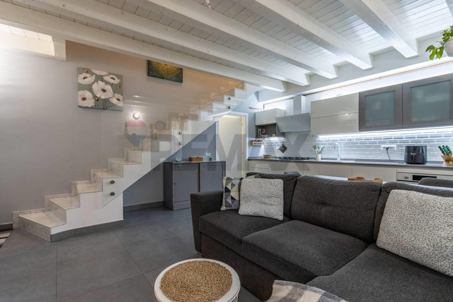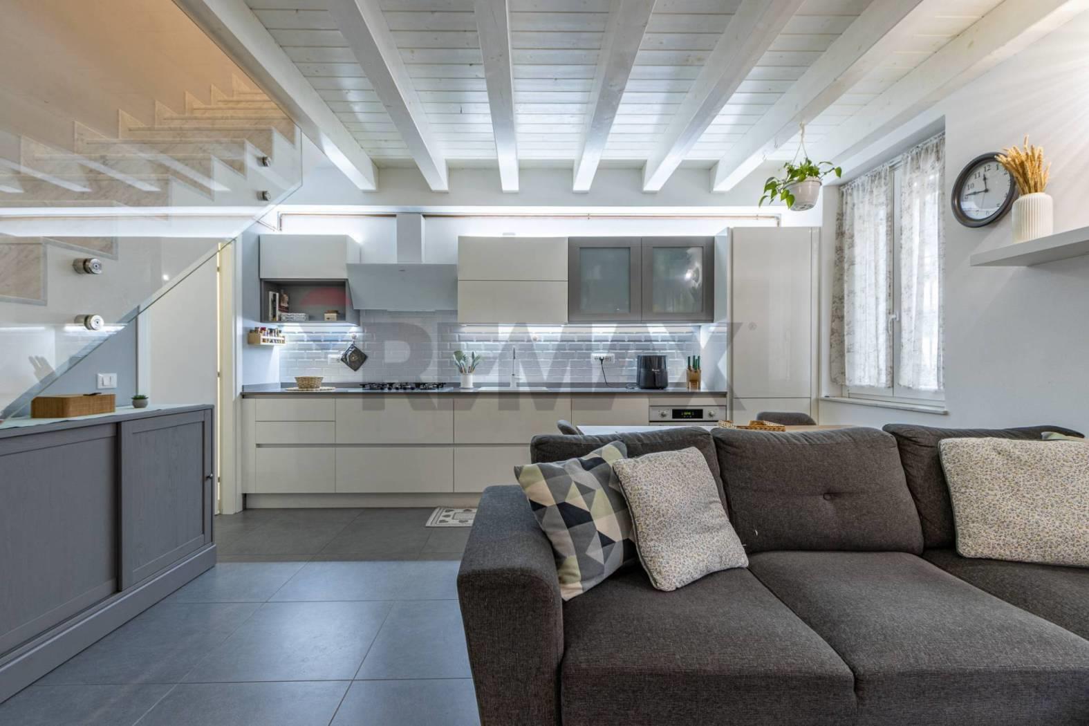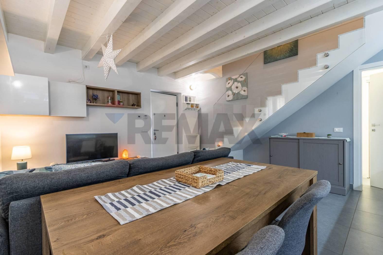 L'immobile si distingue per uno stile architettonico ricercato, con travi a vista in rovere sbiancato che valorizzano gli ambienti e conferiscono un'identità elegante e contemporanea.