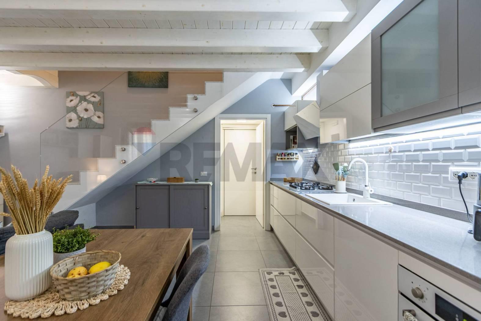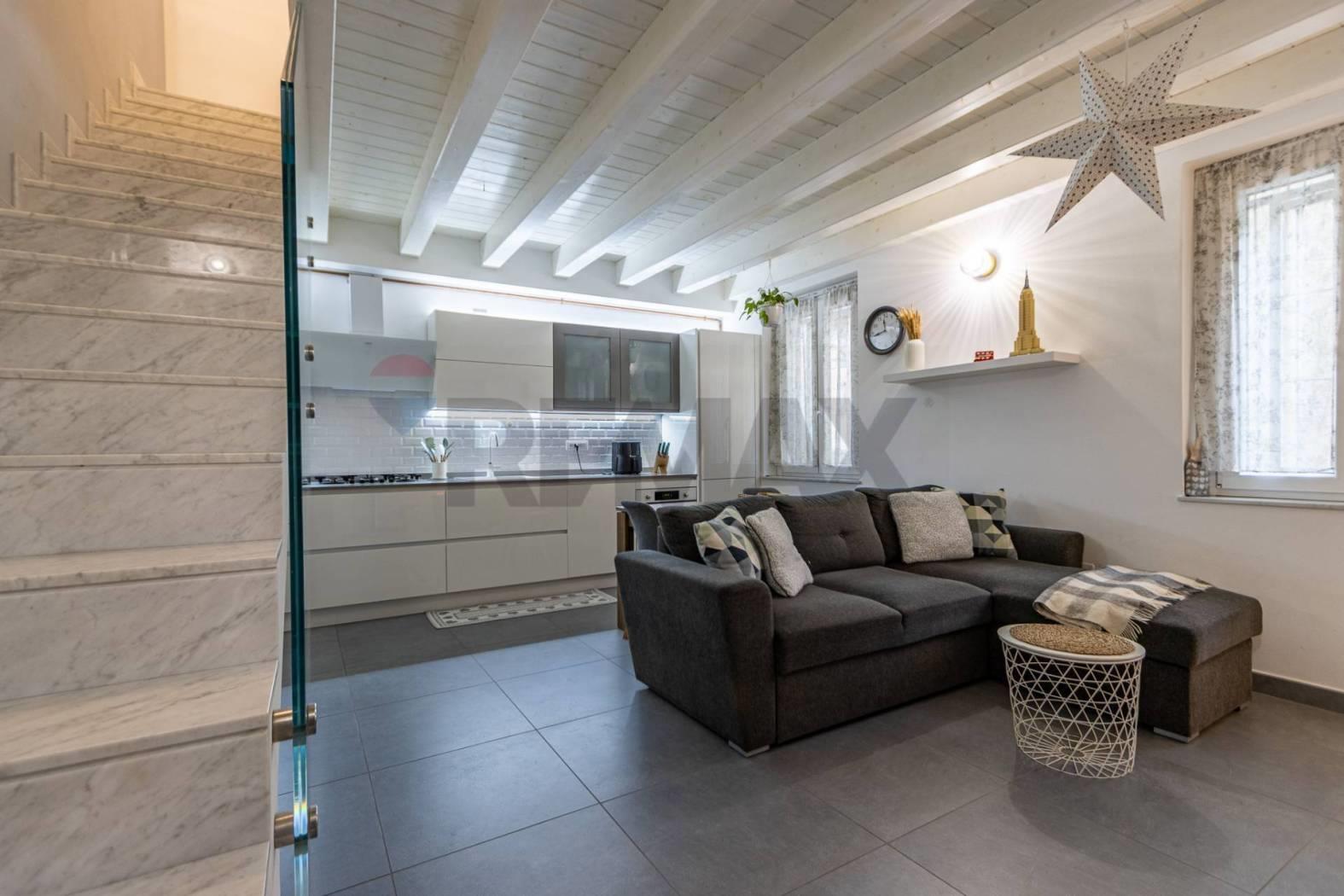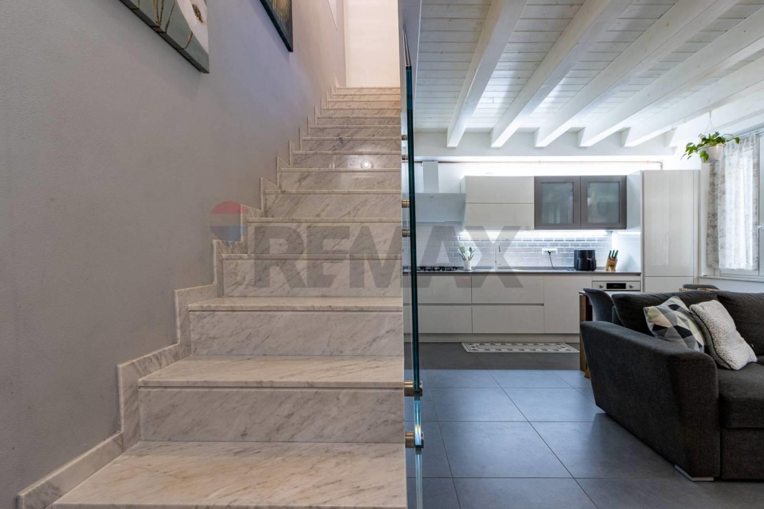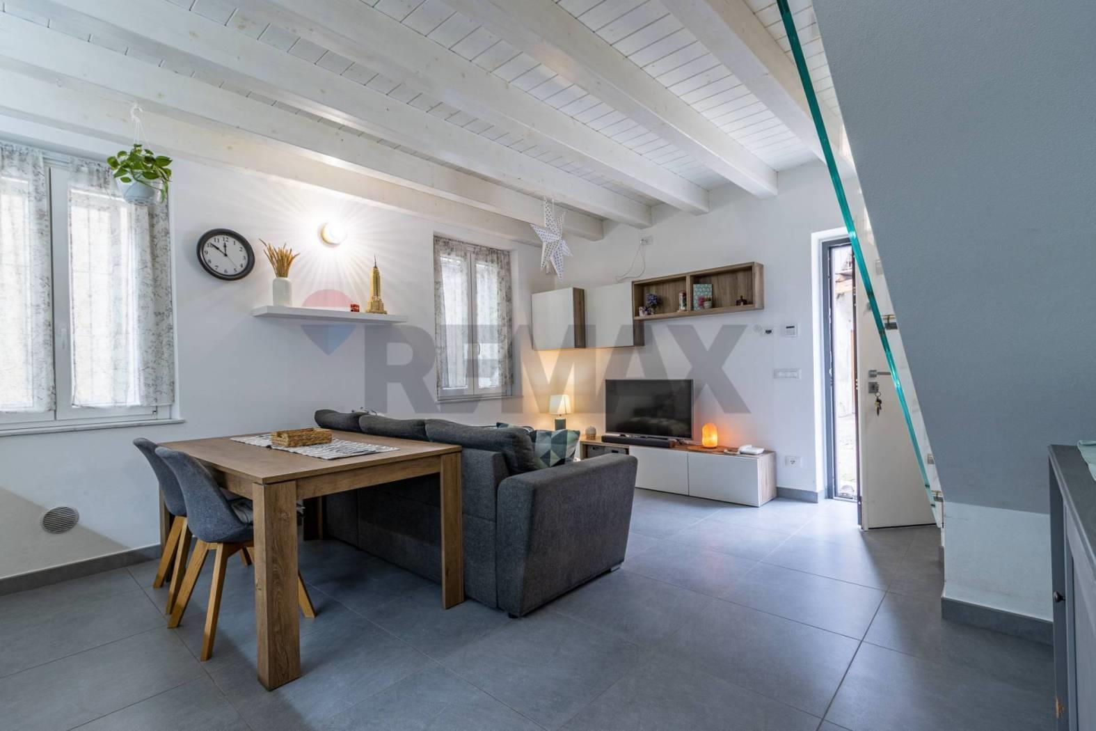 L'immobile si distingue per uno stile architettonico ricercato, con travi a vista in rovere sbiancato che valorizzano gli ambienti e conferiscono un'identità elegante e contemporanea.