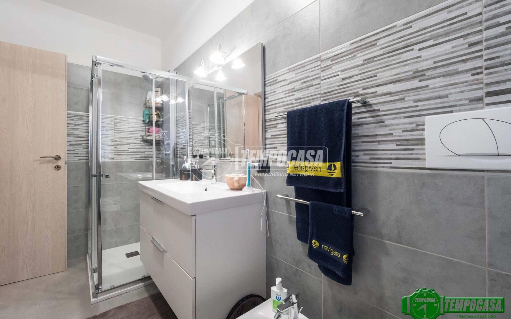 L’ingresso si apre su un piccolo spazio esterno di qualche metro quadrato, utile per posizionare piante o un piccolo tavolino. Entrando nell’abitazione si accede alla cucina, che risulta semi separata rispetto al soggiorno, creando una suddivisione funzionale degli ambienti. Sul retro dell’immobile si trova una piccola area esterna pavimentata, perfetta per essere sfruttata come angolo relax o per organizzare uno spazio aggiuntivo all’aperto. Sempre al piano terra è presente un bagno con box doccia, pratico e ben organizzato.