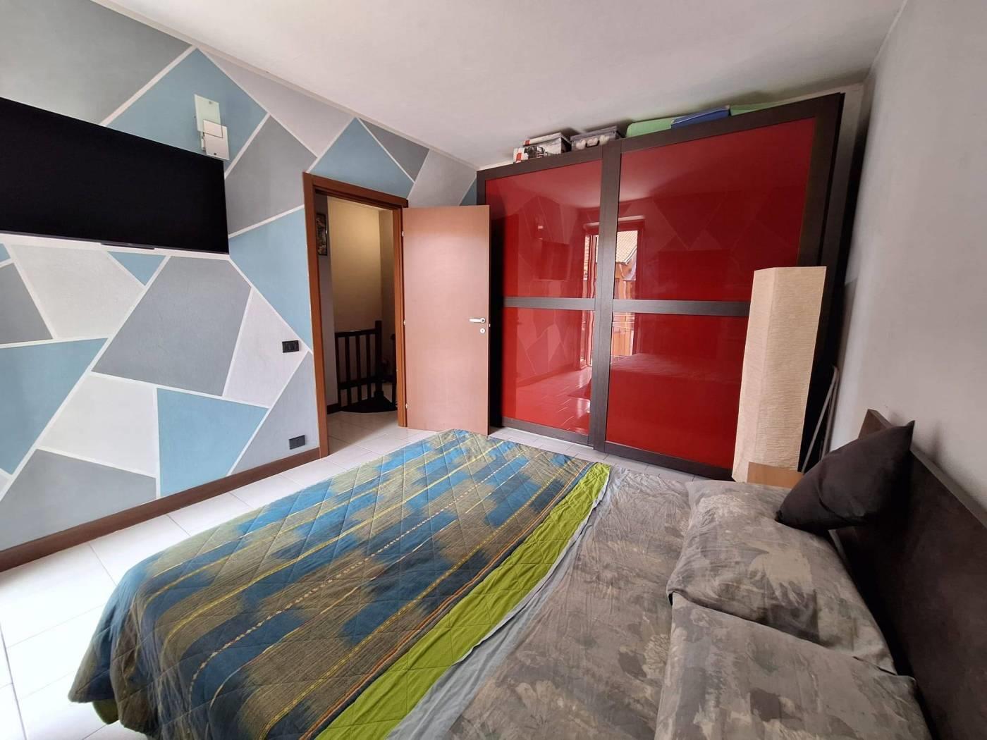 L’ingresso si apre sulla zona giorno, composta dal soggiorno con cucina a vista. Una scala interna conduce al piano superiore, dove si trova la camera matrimoniale con accesso al balcone e ad un locale finestrato, ideale come studio o cabina armadio ed il bagno finestrato con vasca.