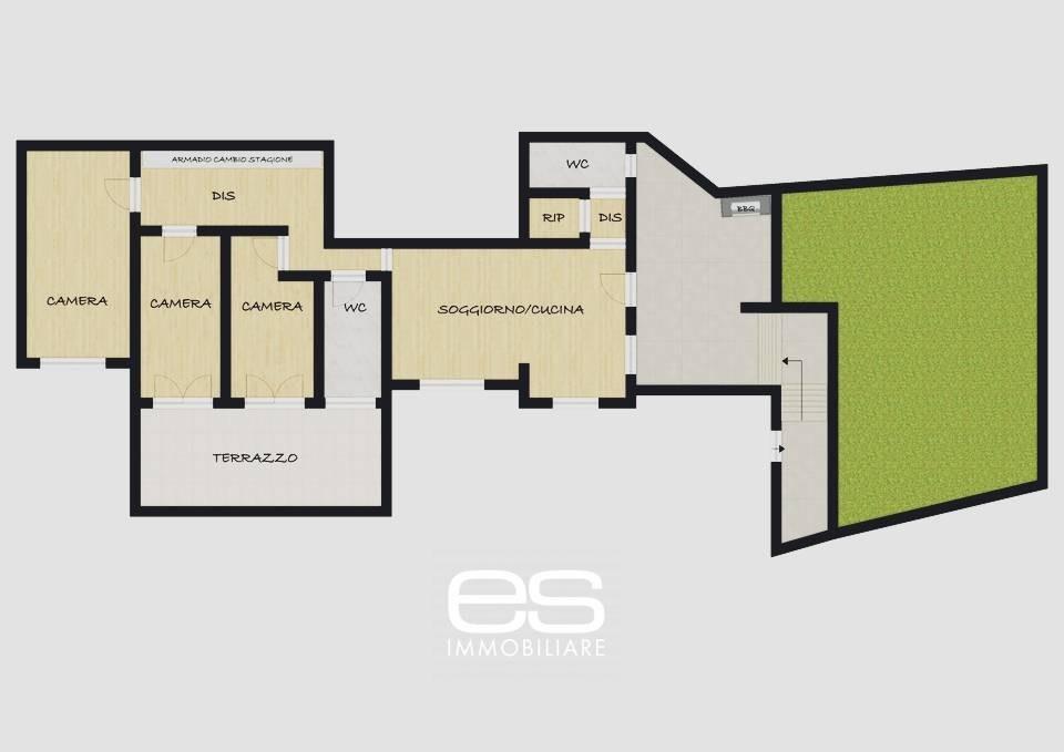 L'appartamento, dotato di ingresso indipendente, è così composto: zona giorno con ampio soggiorno e cucina a vista, disimpegno, spaziosa camera matrimoniale, due camere da letto e doppi servizi igienici.