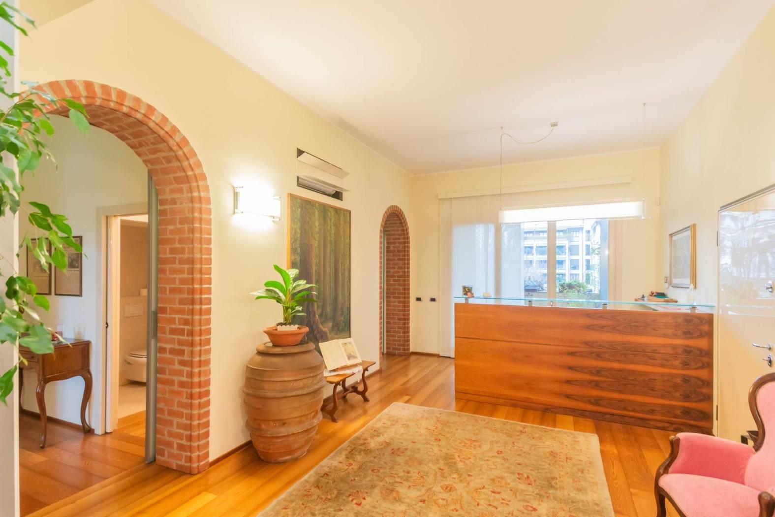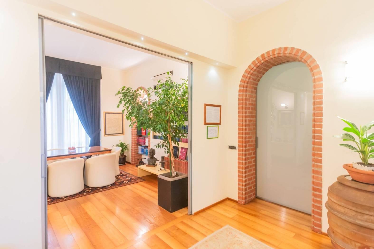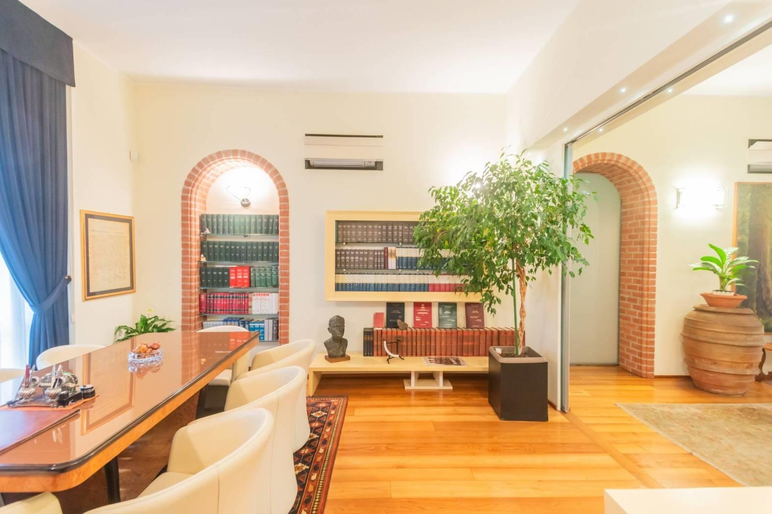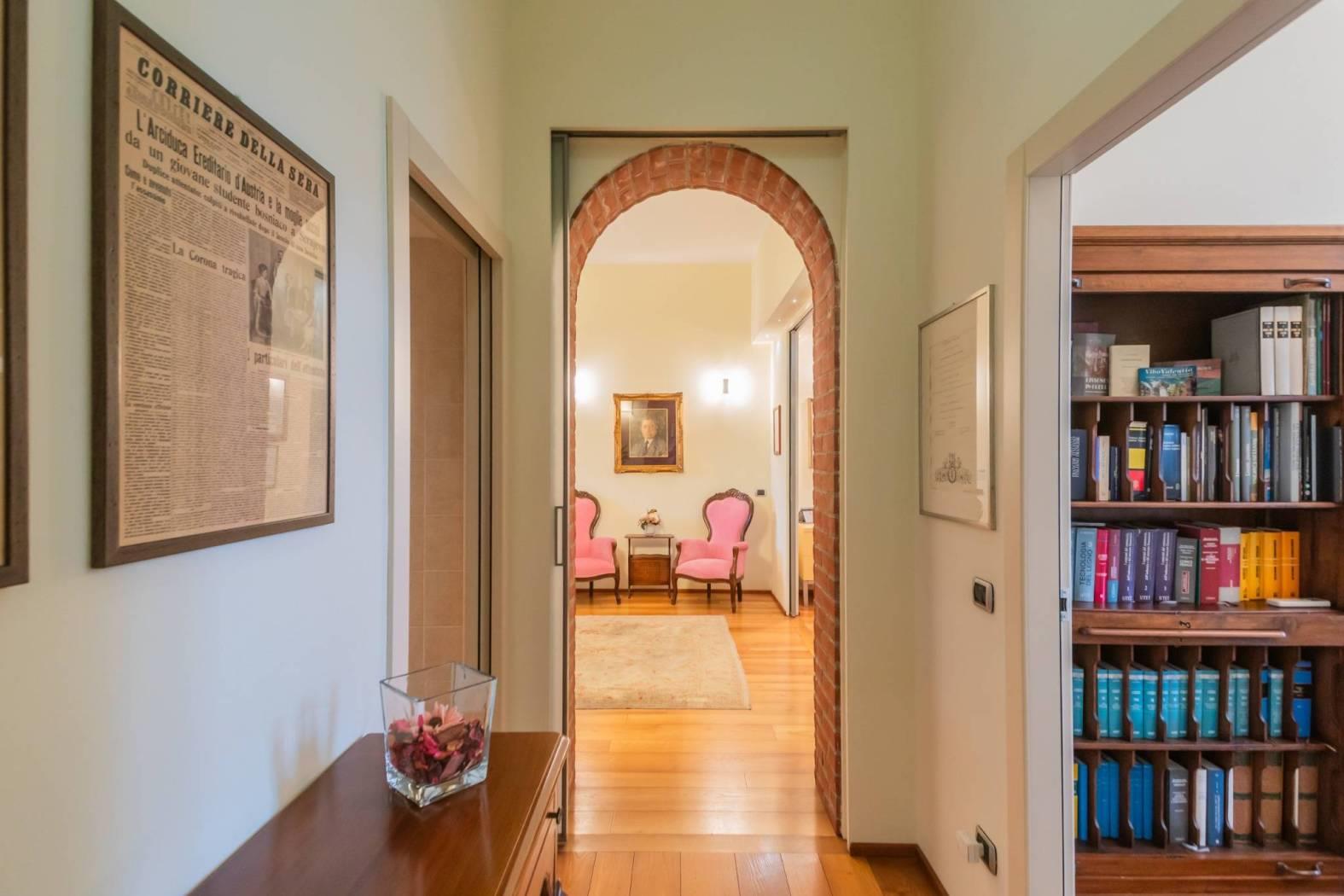 Un luogo pensato per essere caldo, prestigioso, antico e luminoso: soffitti alti e ampie finestrature con porte e serramenti di classica solidità; possente e mielato assito di robinia sui pavimenti in tutti gli ambienti per la miglior efficienza del riscaldamento a pavimento.
