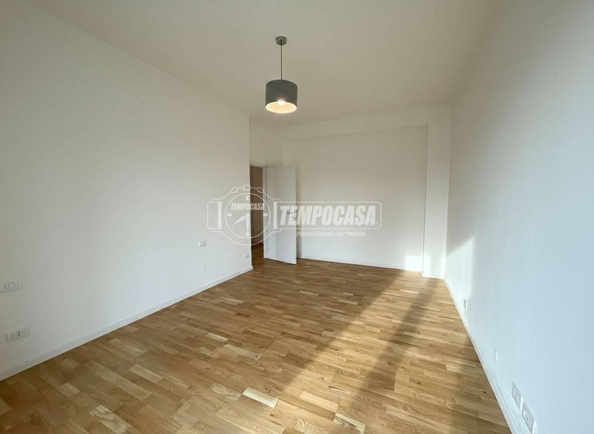 L'appartamento si apre su un luminoso soggiorno che integra un angolo cottura, creando un ambiente conviviale e funzionale.