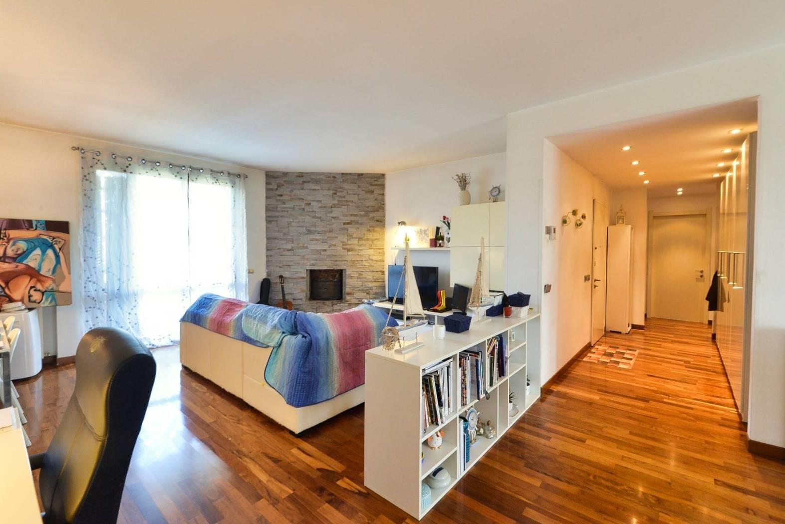Grande soggiorno con camino e zona pranzo , Cucina abitabile a vista ( eventualmente separabile), 2 camere matrimoniali (una con cabina armadio e bagno privato) , Studio/lavanderia e secondo bagno con vasca idromassaggio.