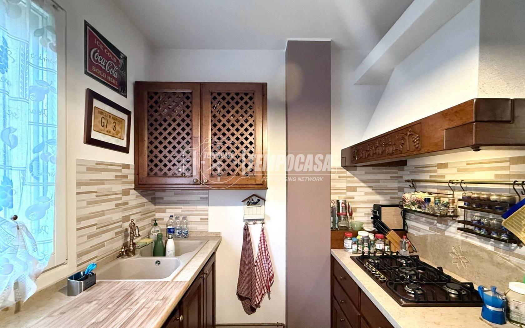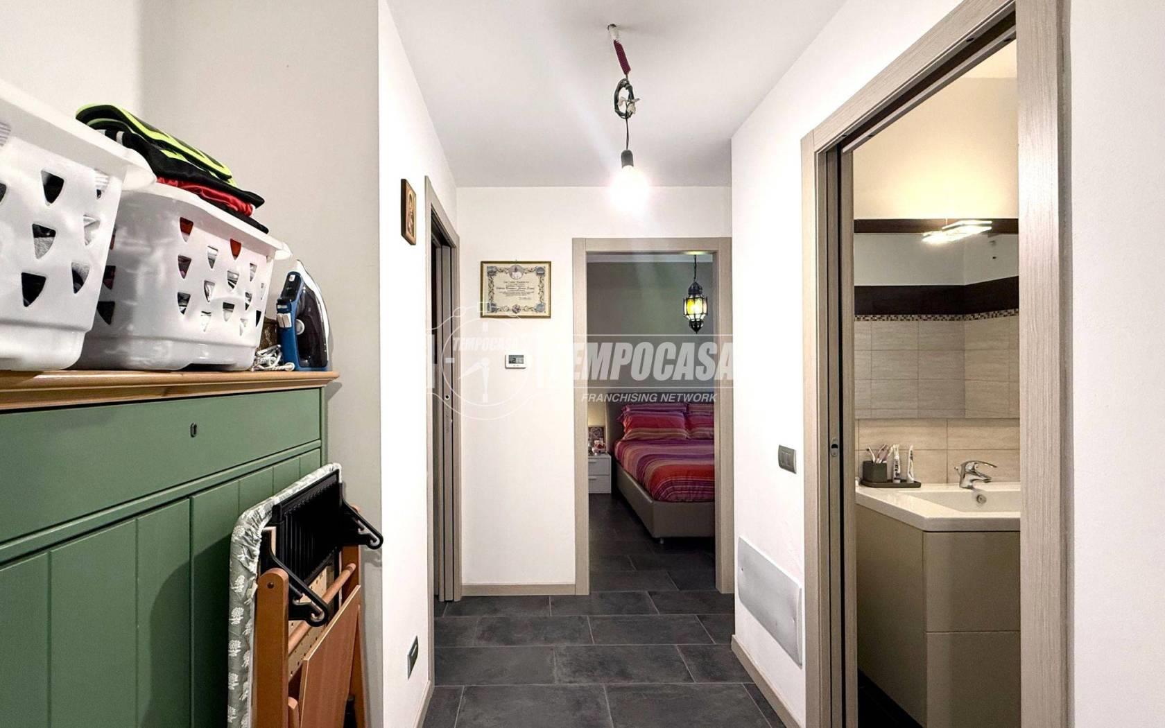 Una comoda scala interna collega l’abitazione al piano sottostante, dove trovano spazio una cantina, una lavanderia e un box doppio, completando una soluzione abitativa funzionale e ben organizzata.