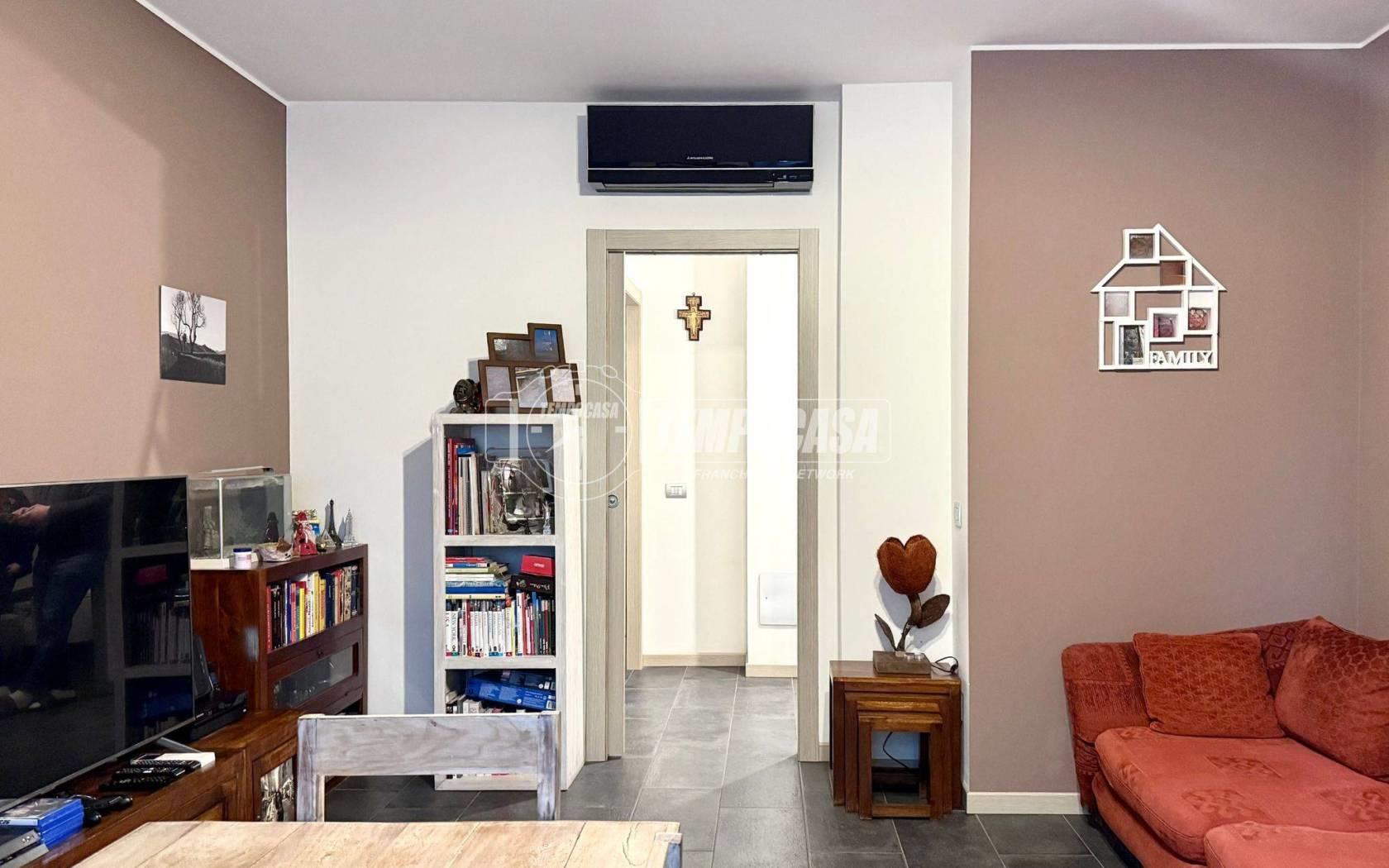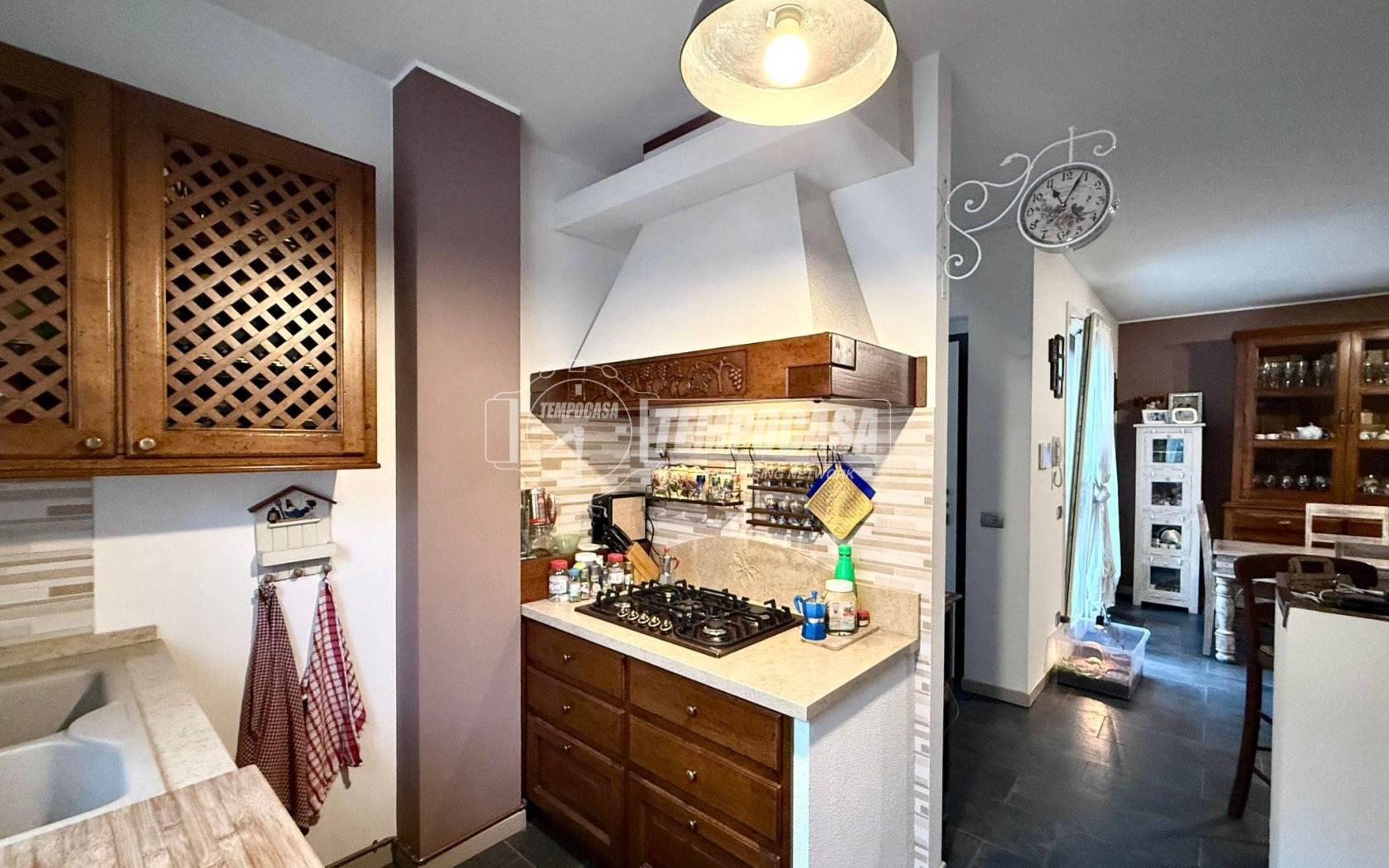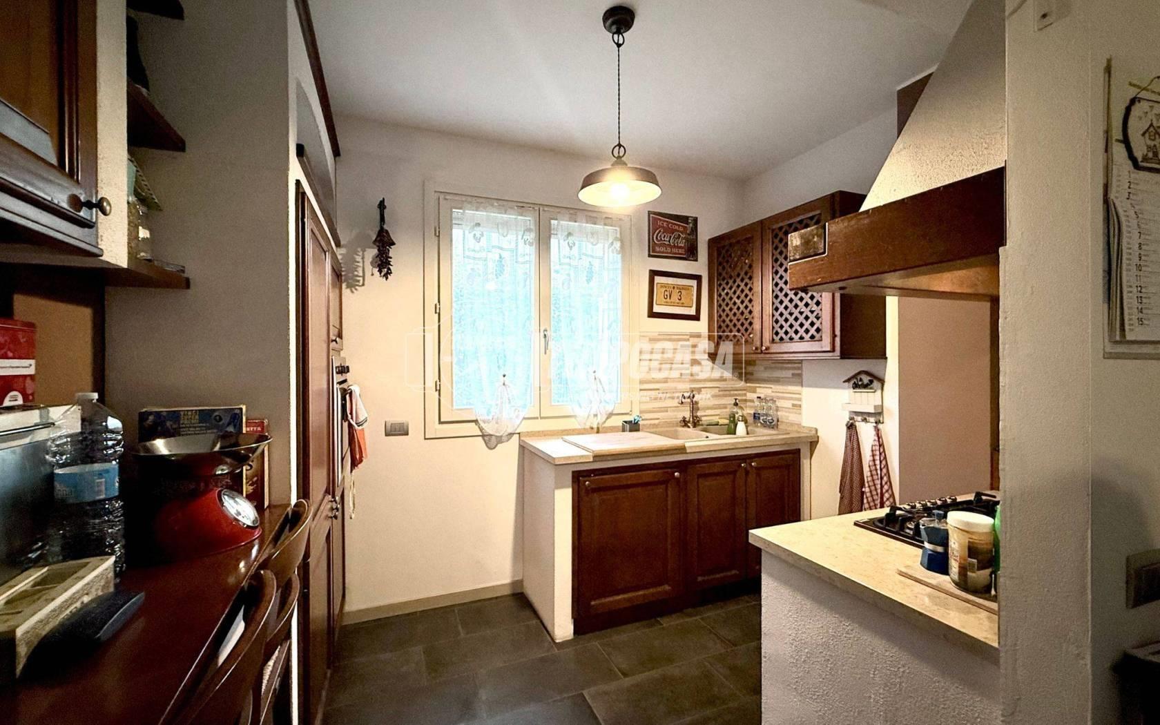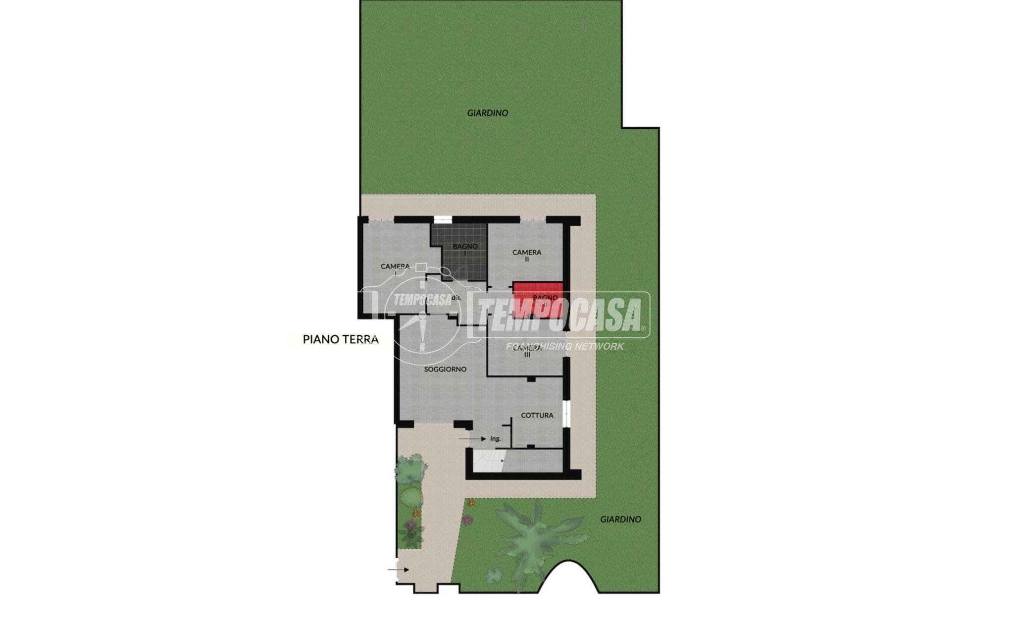 L’ingresso all’abitazione avviene direttamente dal giardino di proprietà, tramite un pratico cancellino privato che garantisce privacy e indipendenza. L’accesso conduce a un disimpegno che introduce alla zona giorno, composta da una cucina separata ma a vista e da un luminoso soggiorno.