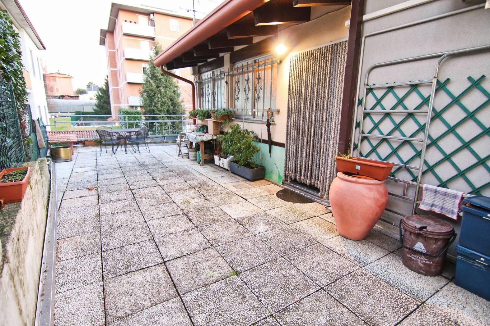 L’accesso avviene tramite una grande area di proprietà esterna delimitata da recinzione ed accessibile tramite cancello automatizzato, dove è possibile parcheggiare più autovetture. L’appartamento è sito al piano rialzato, comodo negli spazi, sviluppa una metratura di mq 100 con una divisione interna che prevede l’ingresso nel soggiorno, la cucina abitabile di generose dimensioni, due camere da letto e bagno. Completa un grande locale polivalente da dedicare ai più svariati usi (terza camera, secondo soggiorno) da cui si accede al terrazzo di mq 31, poi collegato all’area esterna. Al piano sottostante è presente un laboratorio/magazzino costituito da un grande locale open space, con un box auto sul lato. Il piano del laboratorio e box auto è servito da un corsello di proprietà e ingresso indipendente.