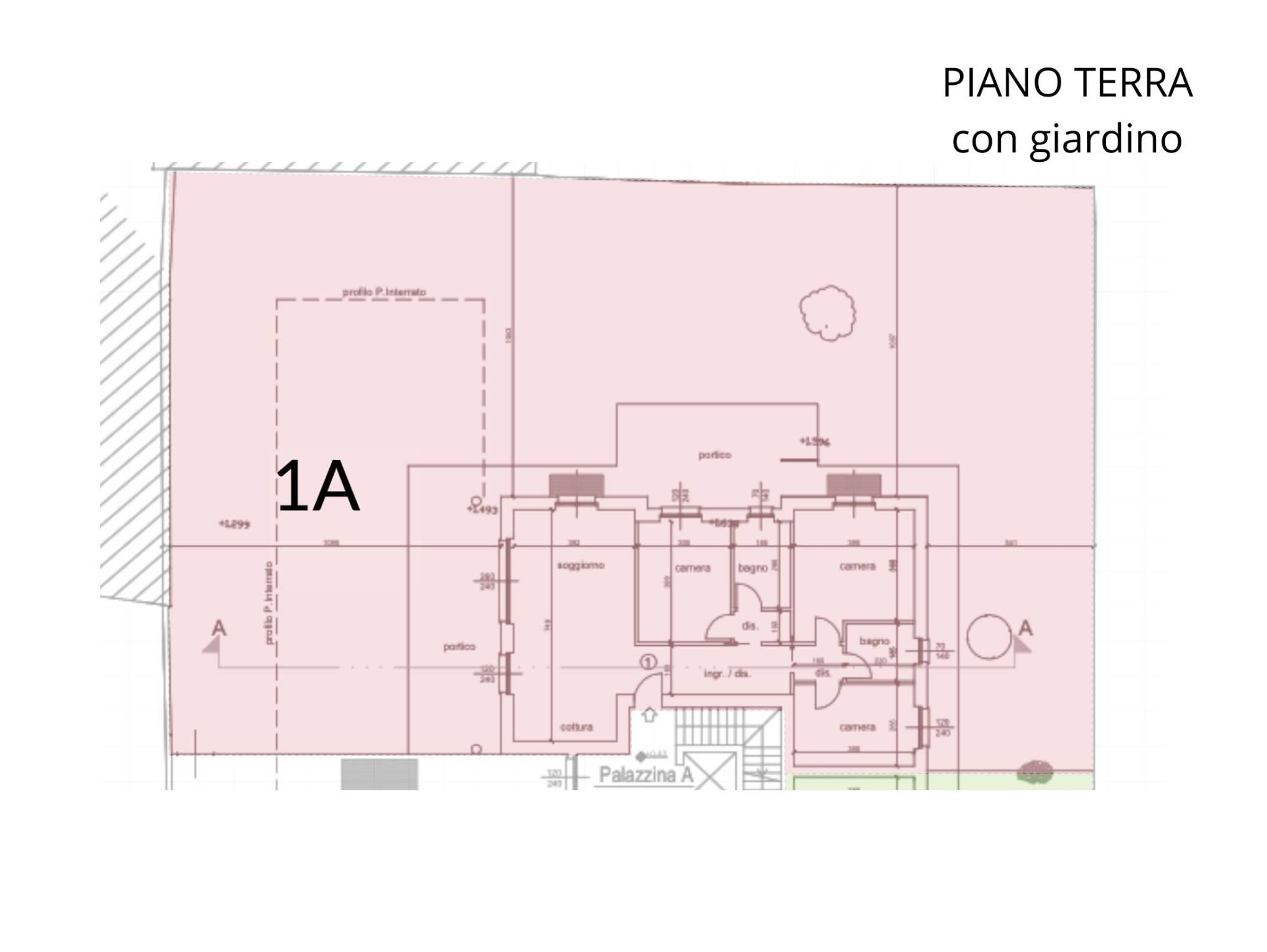 1A. QUADRILOCALE di 108,5 mq con doppi servizi e giardino di 390 mq. Box di 30,5 mq e cantina di 9,28 mq. Euro 492.896,00