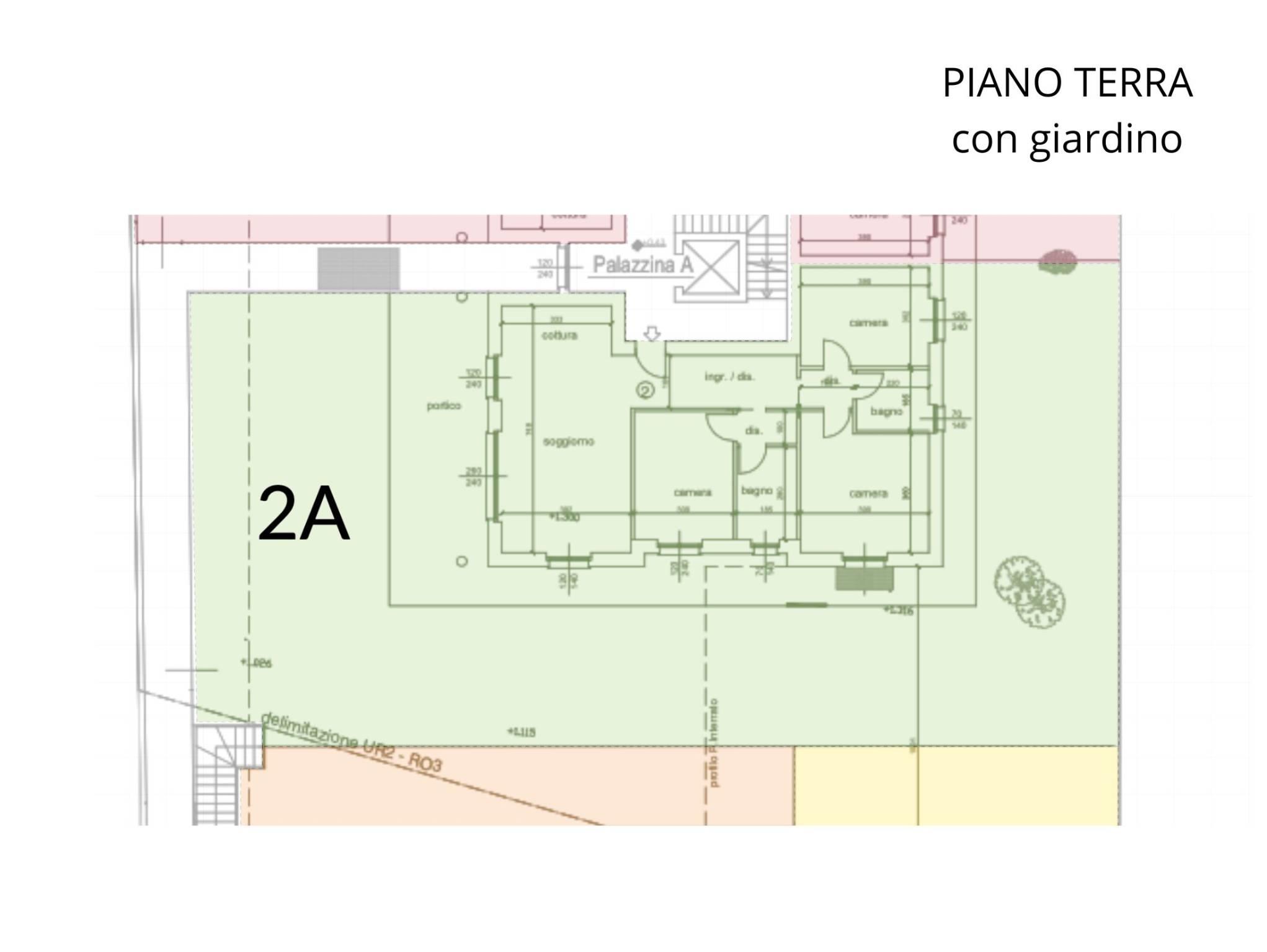 2A. QUADRILOCALE di 108,5 mq con doppi servizi e giardino di 151,3 mq. Box di 37,4 mq e cantina di 9,28 mq. Euro 447.066,60
