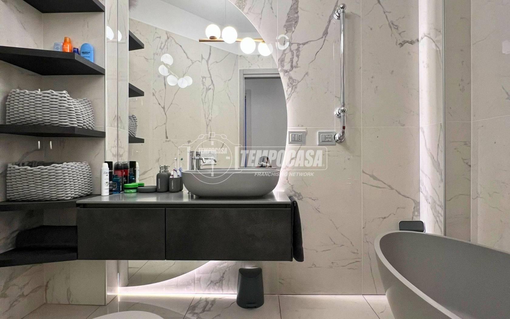 A servizio dell’abitazione doppi servizi: primo bagno con box doccia e il secondo bagno con vasca di design.