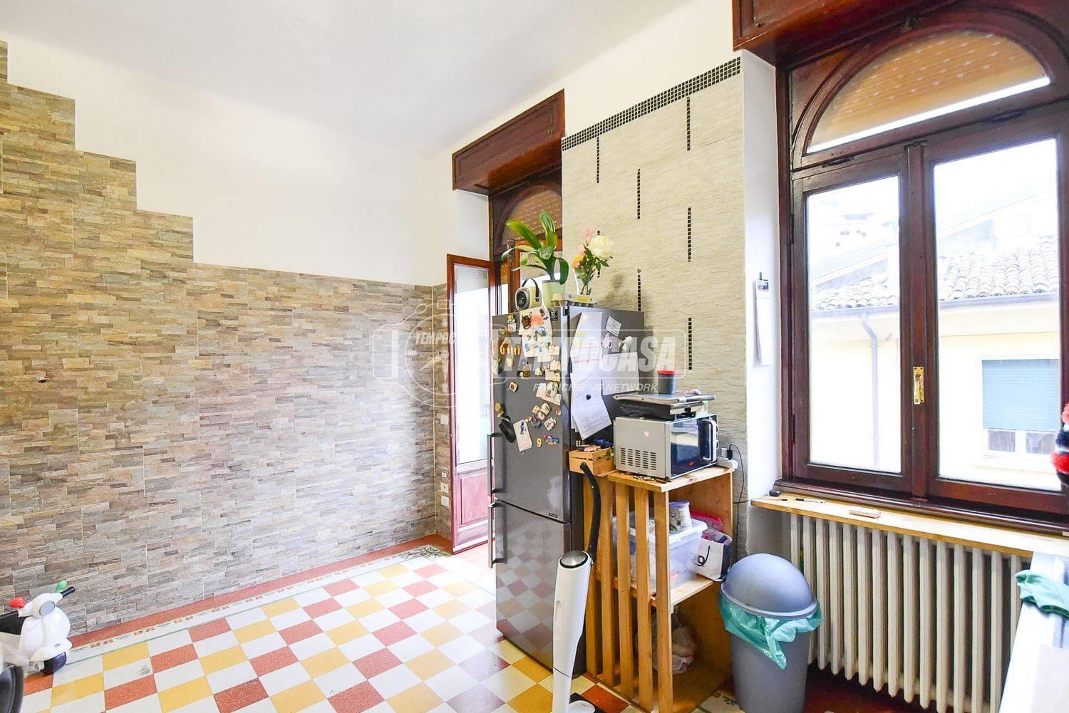 Piazza Garibaldi, in posizione centrale e comoda a tutti i principali servizi, proponiamo in vendita un ampio quadrilocale situato al secondo piano di un contesto ordinato e dotato di ascensore. L'immobile si presenta in buone condizioni generali e con una distribuzione degli spazi funzionale. L’ingresso conduce a un soggiorno di generose dimensioni, ben illuminato e con accesso diretto al balcone affacciato sulla piazza Garibaldi. La cucina è separata pratica e ben disposta anch’essa con accesso al balcone. Nella zona giorno è presente un bagno di servizio utilizzabile anche come lavanderia. La zona notte è composta da due camere da letto matrimoniali entrambe spaziose e una cameretta adatta come studio, stanza singola o camera degli ospiti. Conclude la zona notte un bagno padronale finestrato dotato di tutti i comfort per la vita quotidiana. Completa la proprietà una porzione di sottotetto, utile come spazio accessorio o deposito.