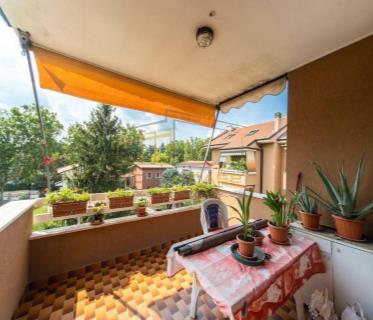 Ingresso che accompagna al soggiorno doppio dotato di terrazzino e camino, alla cucina abitabile anch'essa dotata di balcone, e alla cameretta, il disimpegno porta alla camera matrimoniale con balcone, cameretta, doppi servizi entrambi finestrati.