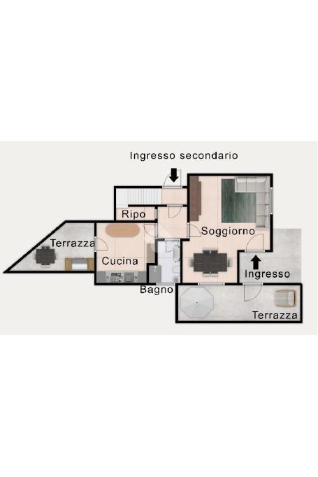 La soluzione vanta di un’area esterna di proprietà collocata all’ingresso dell’appartamento, ideale per trascorrere piacevoli momenti all’aria aperta in condivisione di amici o parenti o semplicemente per godersi del meritato relax.