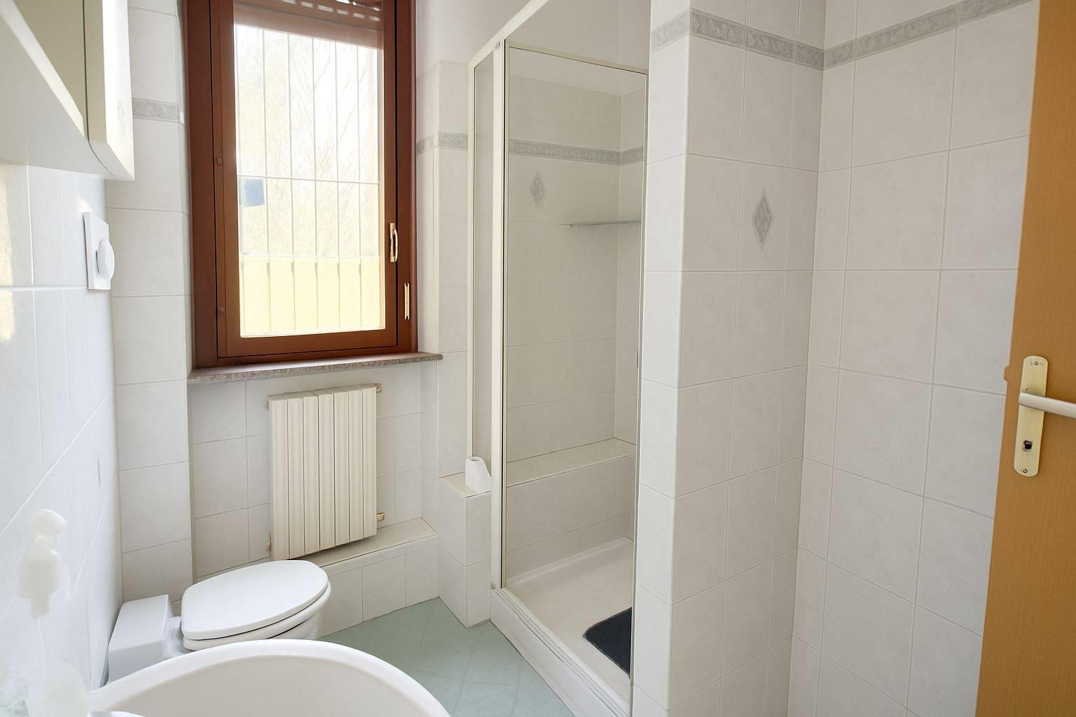 L’ingresso sfocia nella zona giorno con zona pranzo, prosegue verso la cucina abitabile con sfogo esterno sul balcone dotato di barbecue e si completa del bagno di servizio finestrato con doccia e del comodo vano ripostiglio. Al piano primo si sviluppa la zona notte composta da camera da letto matrimoniale, da altre due camere da letto di cui una due balcone e dal bagno finestrato con vasca.