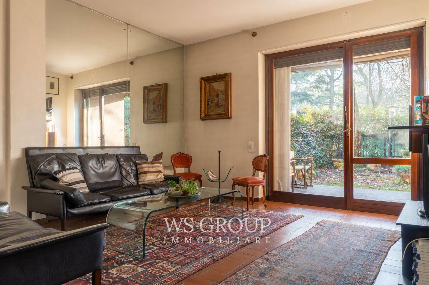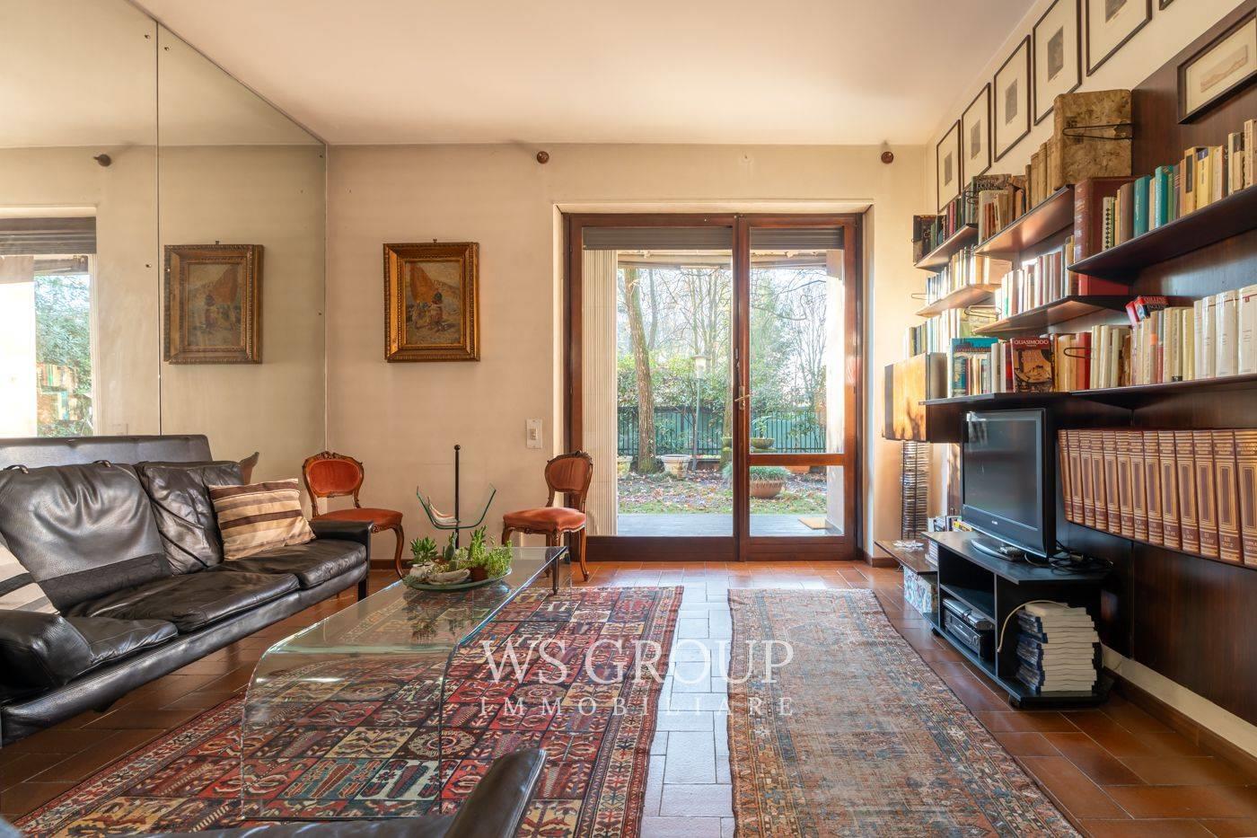 L’appartamento si distingue per una disposizione degli spazi razionale e unica nel suo genere. Si tratta di una soluzione al piano terra con giardino ad uso esclusivo, donando un elevato livello di indipendenza e ampi spazi esterni da vivere in totale privacy. Internamente l’immobile si compone di un ampio salone con porta finestra che conduce direttamente al giardino, un disimpegno che introduce alla cucina e una sala da pranzo, originariamente adibita a camera da letto. Completano il piano terra una camera matrimoniale e due bagni finestrati.