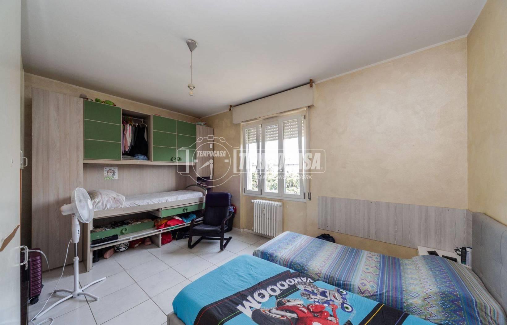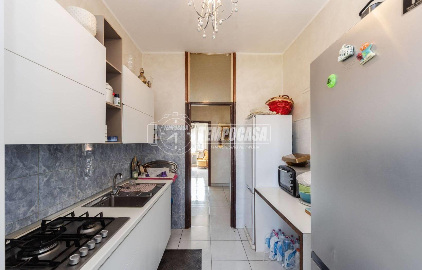 La soluzione si trova al quinto piano, è comodamente raggiungibile tramite l'ascensore e ha una classica disposizione dei locali: ingresso, soggiorno, cucina, tre camere da letto e bagno.