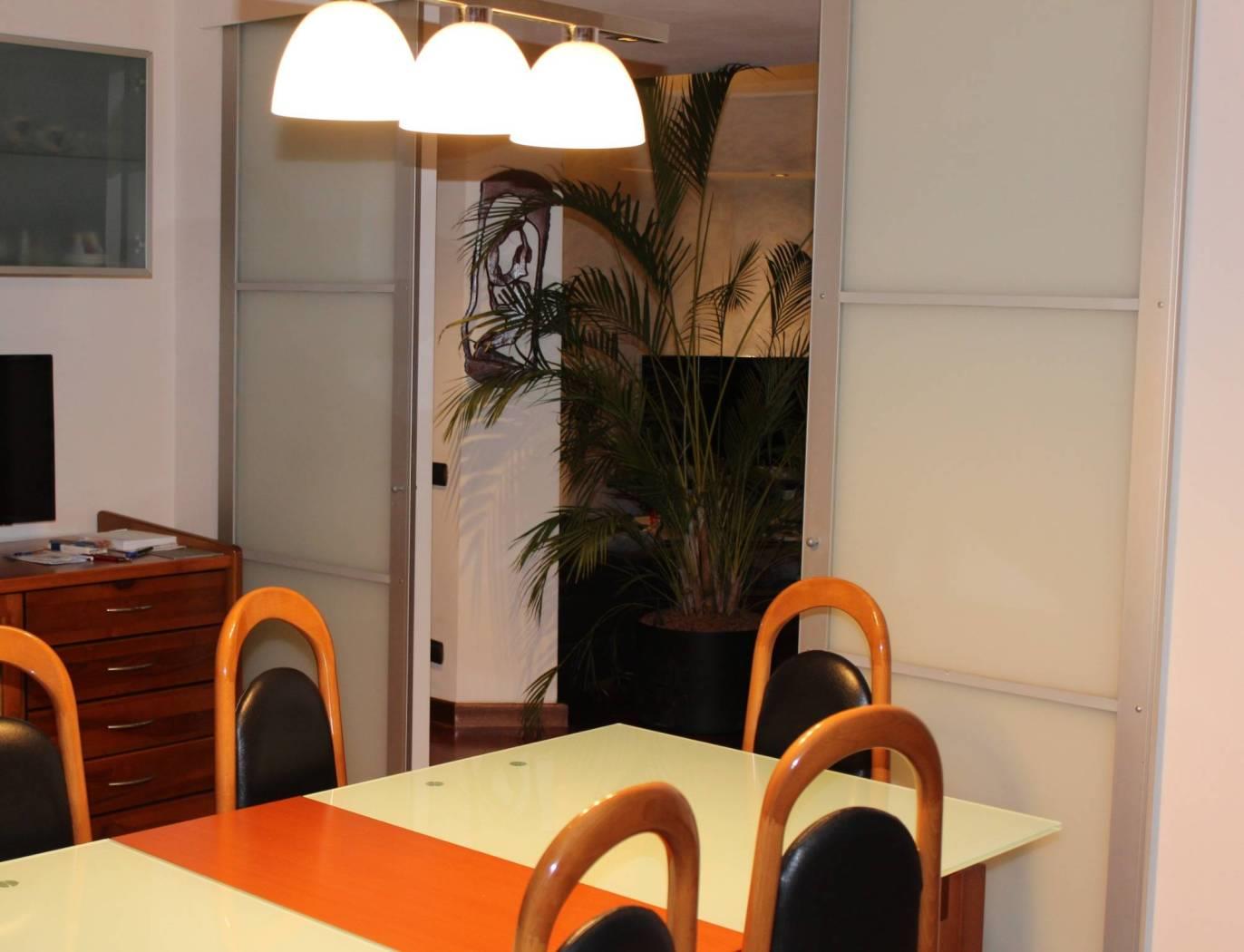 Nova Milanese, tranquilla cittadina dove è in corso la realizzazione della nuova metrotramvia che nel giro di due anni rivoluzionerà la mobilità, offrendo un collegamento alternativo tra la provincia di Monza Brianza e la città di Milano. A pochi passi dal centro - affacciato sull’omonimo canale fiancheggiato dalla famosa ciclovia che conduce anche a piedi verso il Parco e la Reggia di Monza, in complesso residenziale signorile immerso nel verde e tra i più esclusivi sin dalla nascita - la Residenza Briantea, caratteristico per le sue facciate in marmo rosa dalle affascinanti sfumature cromatiche, proponiamo in vendita favoloso appartamento di quattro locali tutto in parquet con tripla esposizione che vede la presenza di un’importante salone con camino in comunicazione con il terrazzo, una sala da pranzo affacciata sul secondo terrazzo, un disimpegno notte con nicchia che accoglie un comodo guardaroba per gli ospiti, tre camere da letto di cui una con bagno privato e doccia, un secondo ampio bagno con doppio lavabo e vasca idromassaggio angolare, un ripostiglio. Zona giorno dotata di tapparelle elettriche. Parzialmente arredato: cameretta seminuova progettata e realizzata su misura, soggiorno. Entrambi i terrazzi sono vivibili e finemente piantumati. Termoautonomo. Climatizzazione ambientale. Completano la soluzione la cantina. poss.box singolo a 20.000,00 Immobile di pregio, per chi ama grandi spazi. INFO E PLANIMETRIE IN STUDIO STUDIO FA-SA IMMOBILIARE Via Giuseppe Garibaldi, 80 Nova Milanese tel. 338 56 14 294 lun-sab 09.15-12.00 / 15.00-19.30 | sab pomeriggio su appuntamento